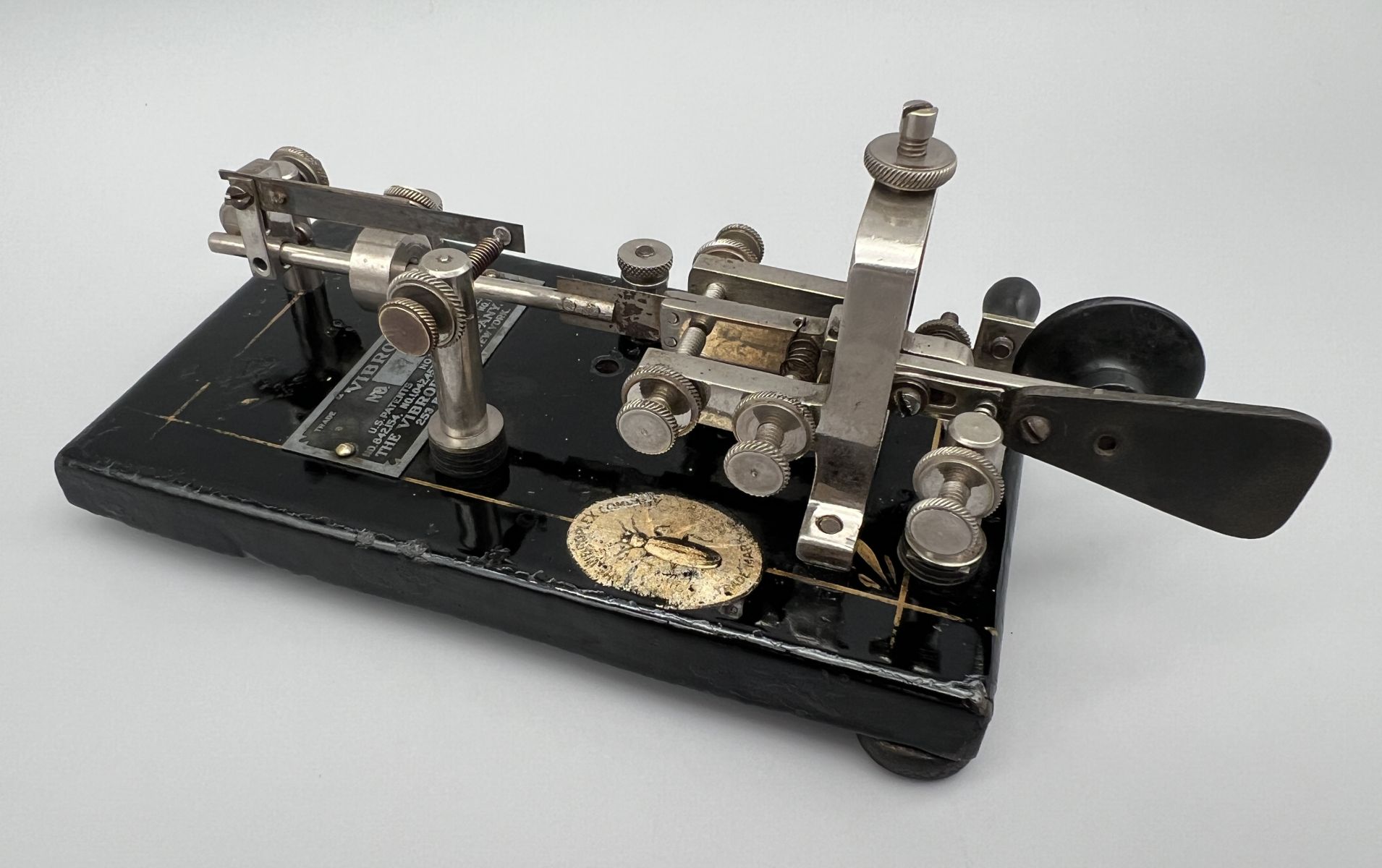 The Semi-Automatic Key, also known as the Bug Key (or simply Bug), was invented by Horace Martin in 1902 (The Vibroplex Company) in order to cure the problem of “Glass Arm” (known today as Carpal Tunnel Syndrome). Telegraph operators of the 19th Century would frequently suffer from paralysis due to the constant up & down motion of operating a telegraph key all day. With the Bug Key, the lever moves from side to side, producing dots in one direction and dashes in the other. The dash side operated much like a regular straight key turned on its side, but the dots were created by a vibrating pendulum which essentially allowed the operator to send a series of dots automatically without having to exercise multiple wrist motions, thus greatly reducing the problem of Glass Arm. The invention of the Bug Key revolutionized telegraphy, and many companies tried to copy Horace Martin’s design, resulting in numerous court battles. However, other companies did come up with all sorts of neat modifications and design changes to make their keys unique. Some of these "oddball" bugs are highly collectable.