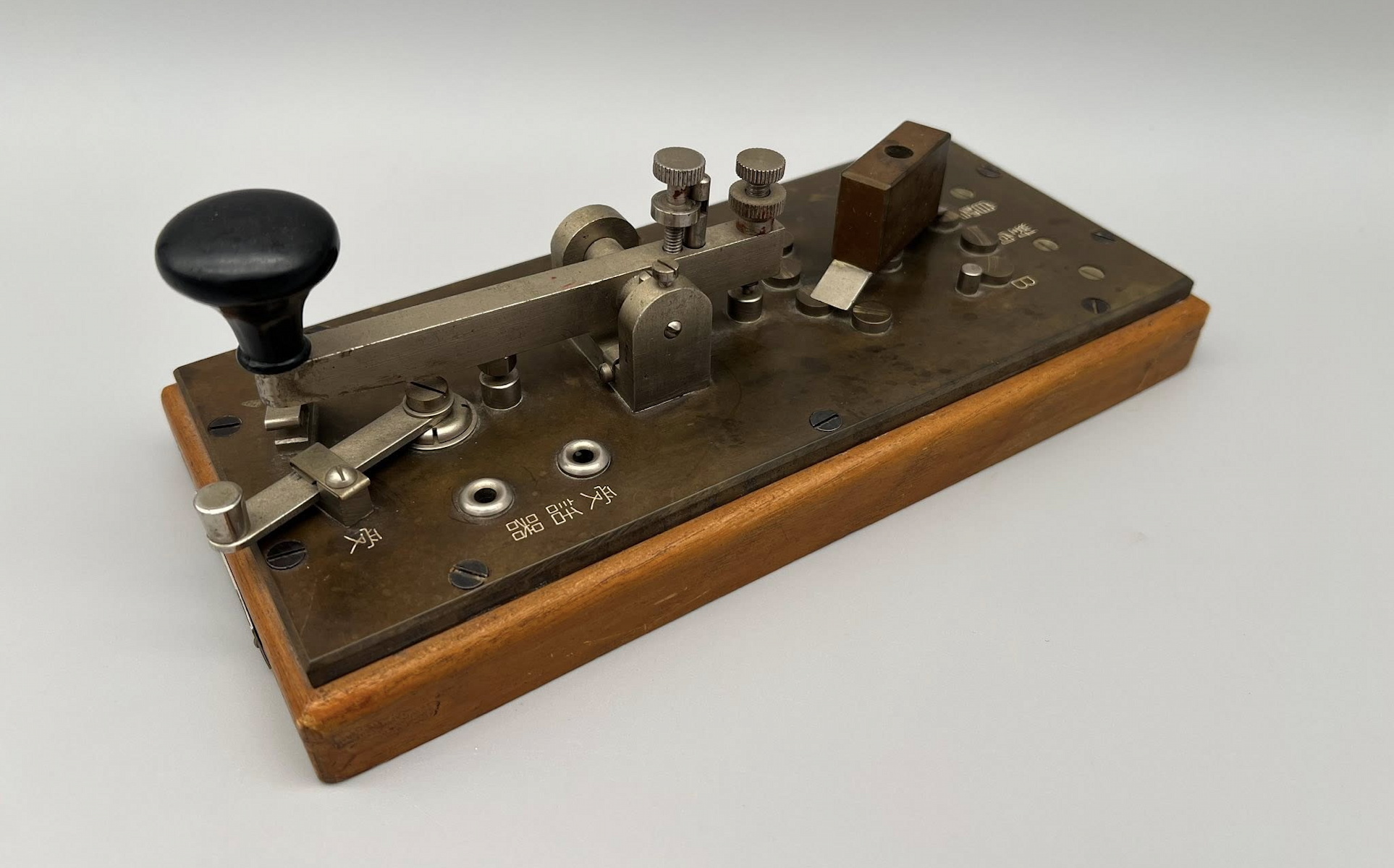 Also known as the Hand Key, this was the basic tool for sending Morse Code. The key is basically a simple on-off switch with a lever that pivots over a base. An insulated contact is located at the front of the base. Older keys used on landline circuits also have a circuit closer, which was used to close the circuit when the operator was listening to traffic on the line. When he wanted to send a message, the switch was opened.