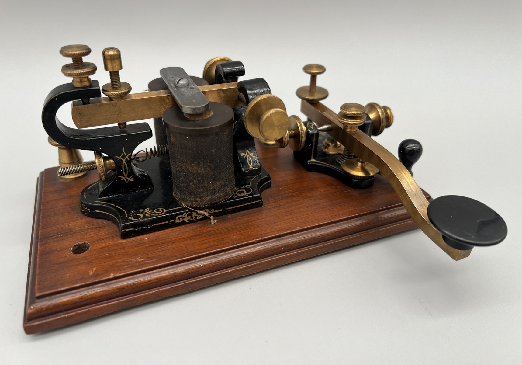 KOB stands for “Key on Board”. It consists of a straight key and a sounder mounted on a single wooden or metal base. They could be used as a simple set for practicing Morse Code, or actually used in a telegraph office. During the Victorian Era, KOB sets were sometimes used in large homes in order to communicate between different rooms. These were referred to as Private Line Sets, which were analogous to an intercom system you might find in a modern home.