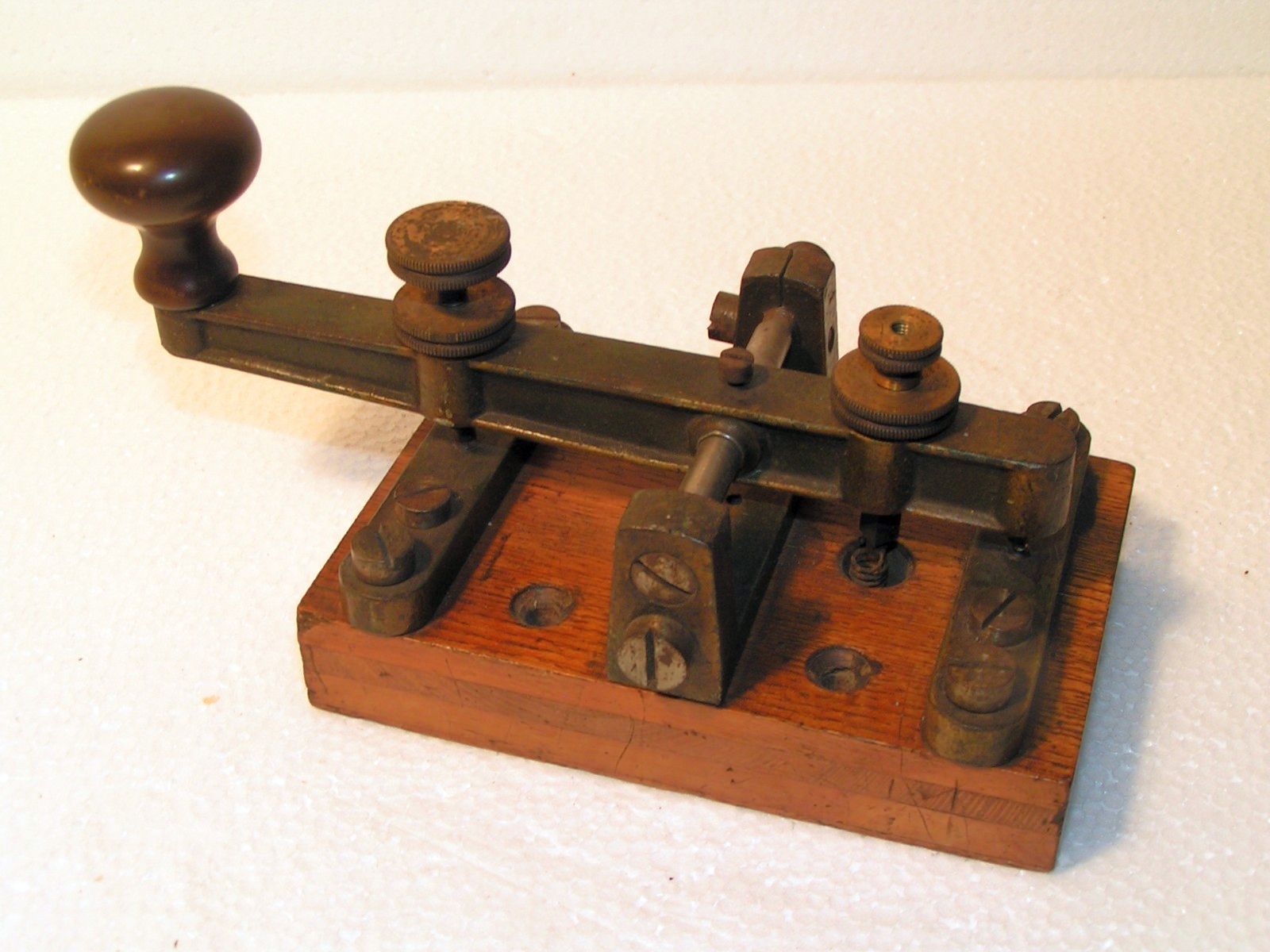 Also known as the Hand Key, this was the basic tool for sending Morse Code. The key is basically a simple on-off switch with a lever that pivots over a base. An insulated contact is located at the front of the base. Older keys used on landline circuits also have a circuit closer, which was used to close the circuit when the operator was listening to traffic on the line. When he wanted to send a message, the switch was opened.
