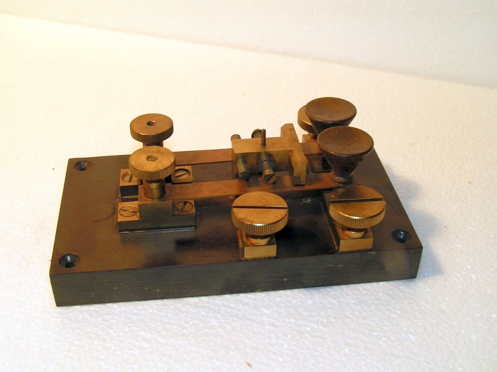 Also known as the Hand Key, this was the basic tool for sending Morse Code. The key is basically a simple on-off switch with a lever that pivots over a base. An insulated contact is located at the front of the base. Older keys used on landline circuits also have a circuit closer, which was used to close the circuit when the operator was listening to traffic on the line. When he wanted to send a message, the switch was opened.
