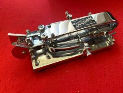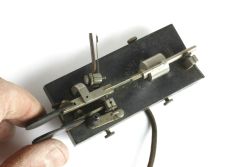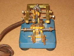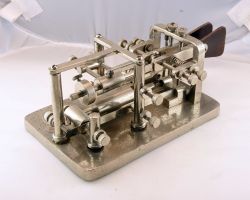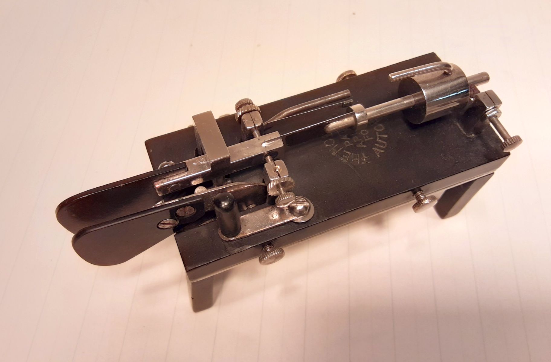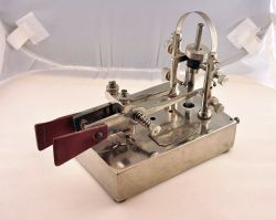 Made by the Hitchcox Brothers of Adelaide around 1920. Visually the most impressive bug around, the Triple Lever Automorse had a lever for automatic dots, one for manual dashes, and a third to produce automatic dashes. It is quite a difficult key to master !