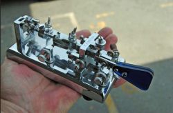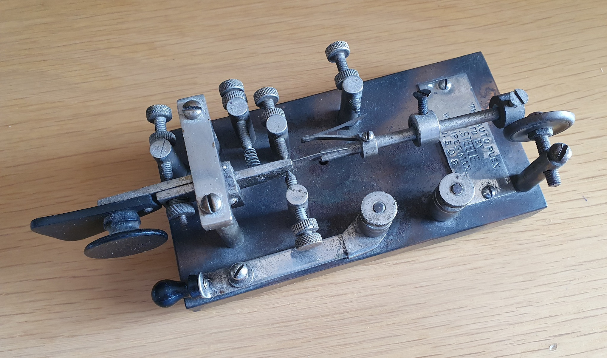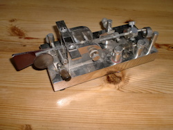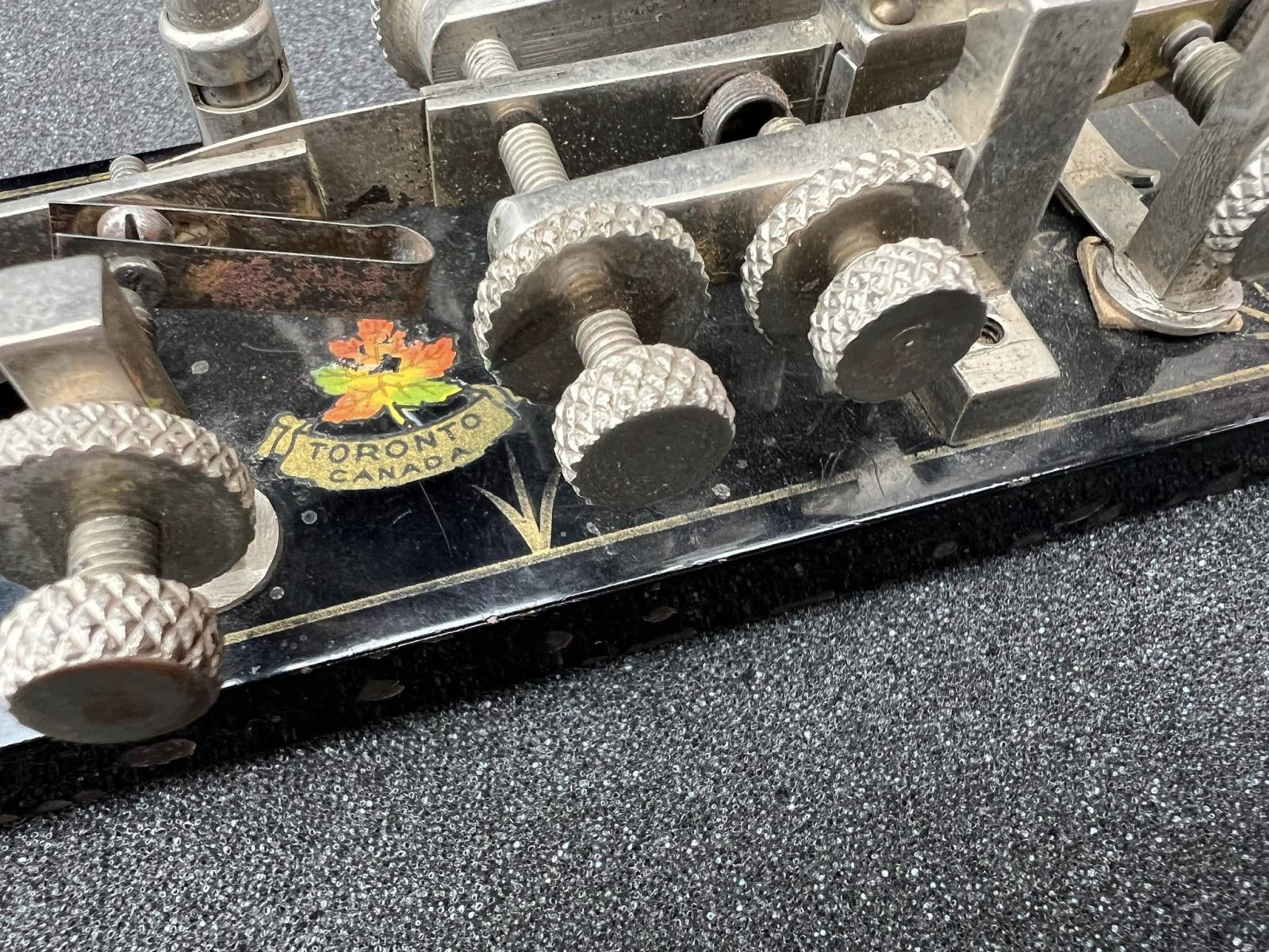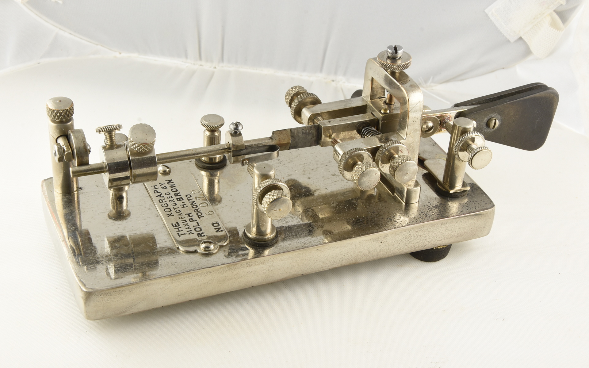 The Xograph, made by Rolph Brown, Toronto in the early 1920s. The Xograph base measured 2 7/8" wide, a little wider than a Vibroplex Blue Racer.