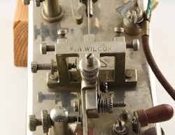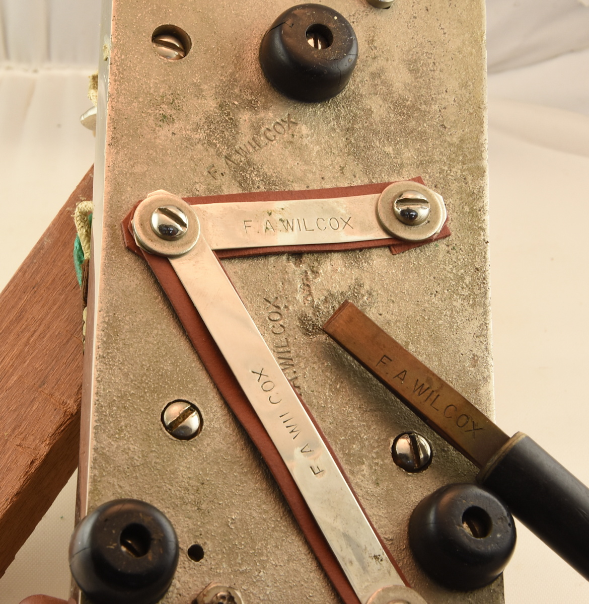 Wilcox liked to stamp his name on his keys in multiple places. This particular early Wilcox key has his name in 7 places on the key, plus one on the bug wedge !!