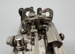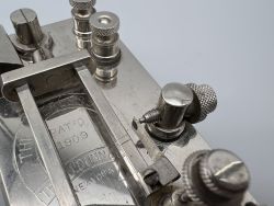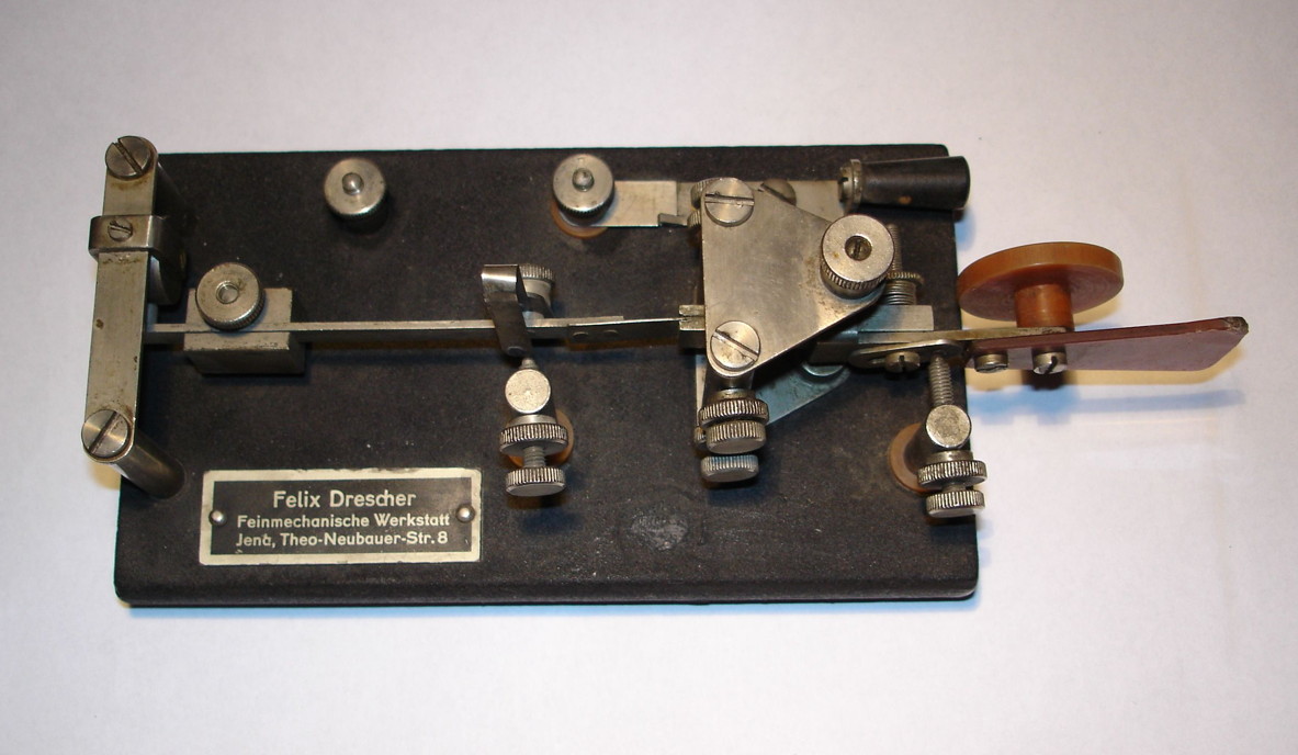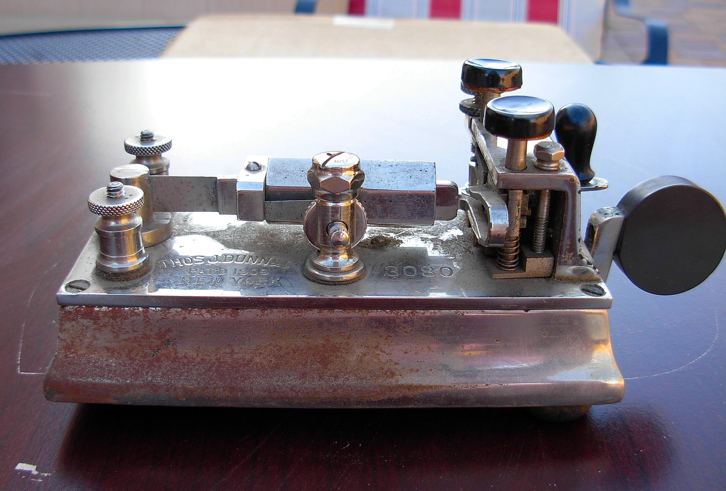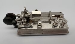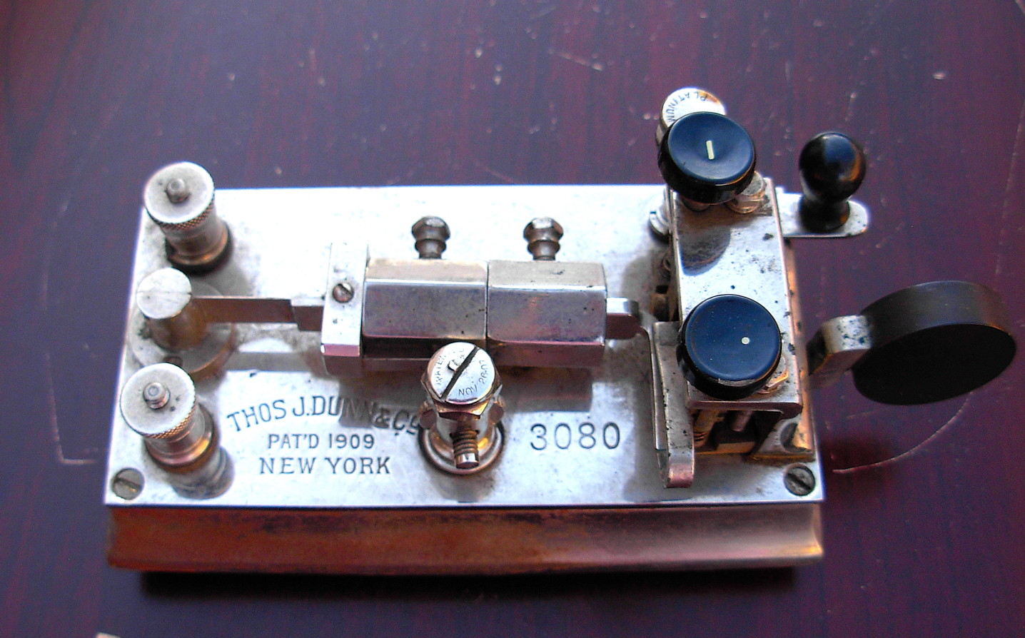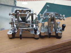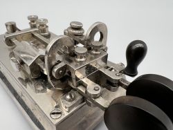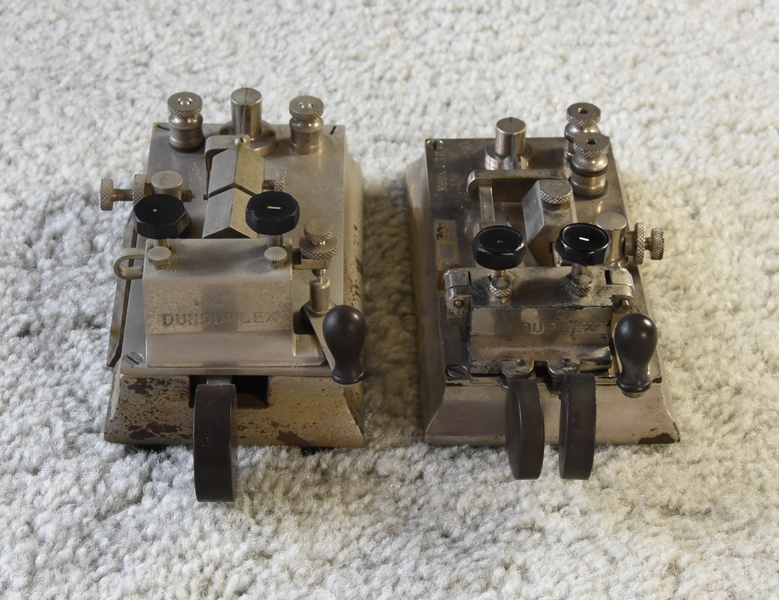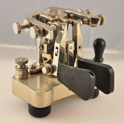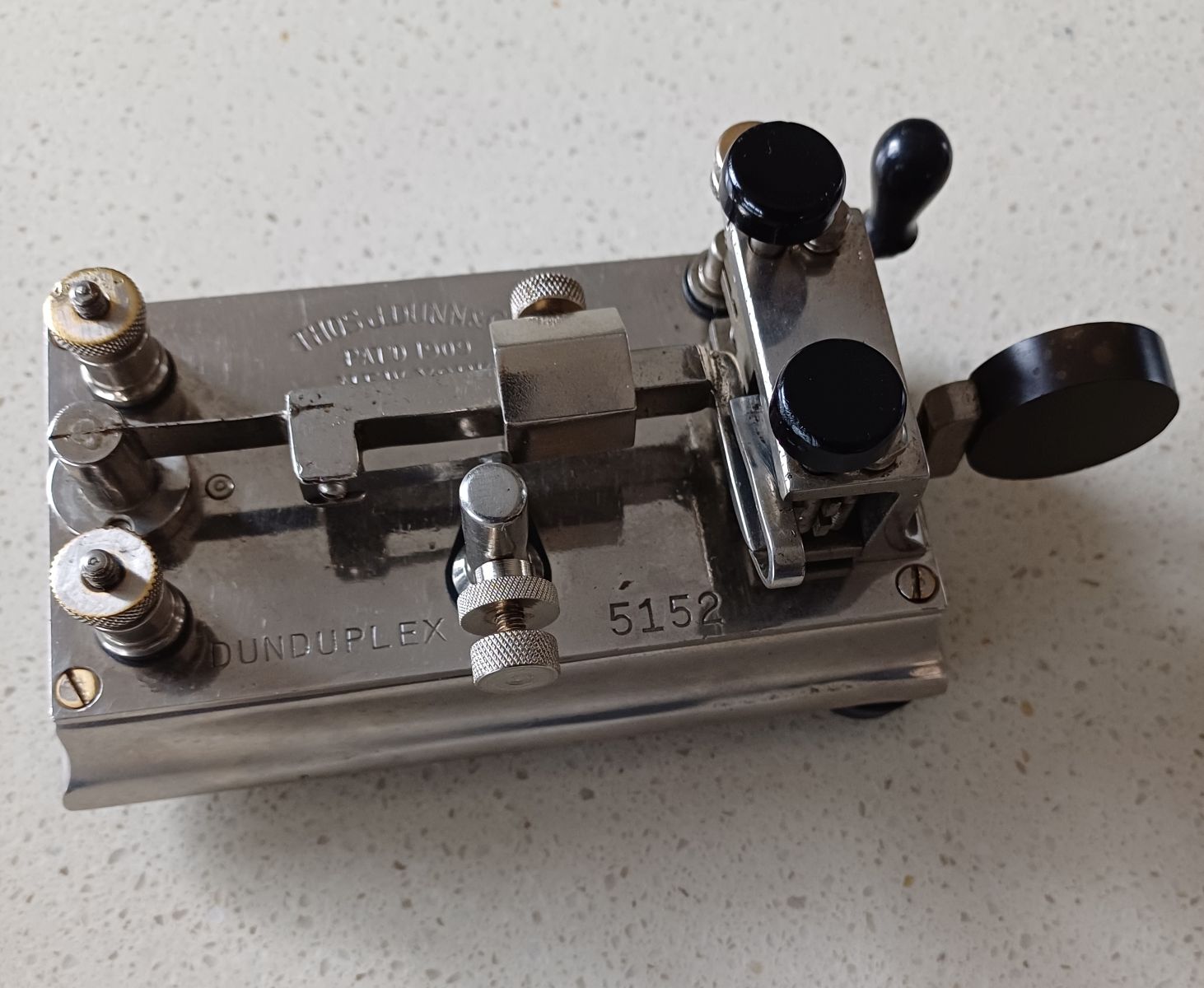 His most well known key is the Dunduplex which came in both single-lever and double-lever models. The double-lever model was his first design and also the scarcer of the two. The key operates in two ways. First, the key can be operated like a normal semi-automatic key by moving the paddle(s) from side to side. Or, the operator can depress the two black plungers on top of the frame to produce the dots and dashes.