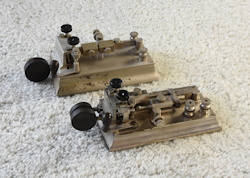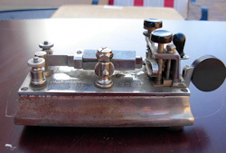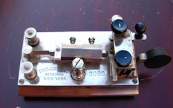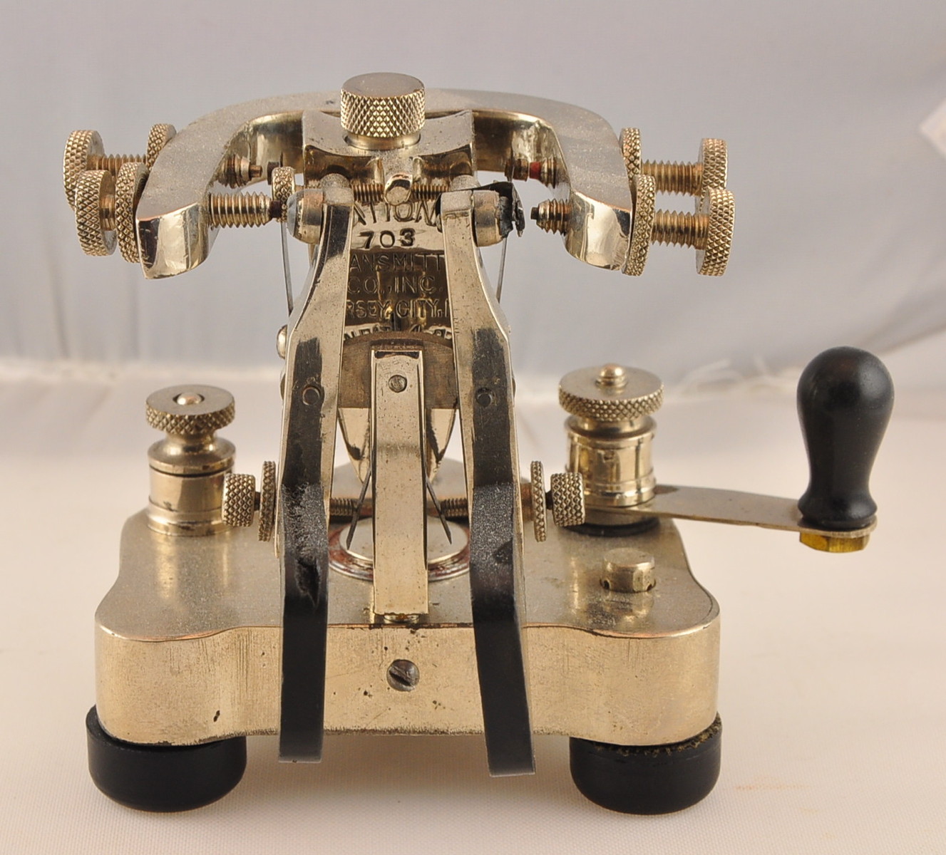 Dunn's other key was a vertical pendulum design, similar to the Vibroplex Upright, that he sold through his outfit called The National Transmitter Co, also in Jersey City. There were 2 versions of the National Upright bug. Both operated similarly but one was larger than the other.