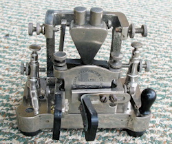 The Peerless bug was very similar in design to the double lever Dunduplex, the main difference being the manual keying plungers were replaced with U-shaped brackets that accomplished the same thing. Only a few of these keys have been seen.