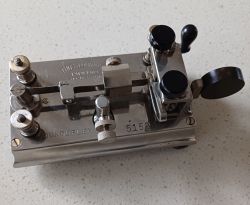 Here is a nice example of Dunn's first version of the National Transmitter Upright bug. It is quite a small key but takes very little force to operate, so despite its small size, it does not move around on the operator's desk.