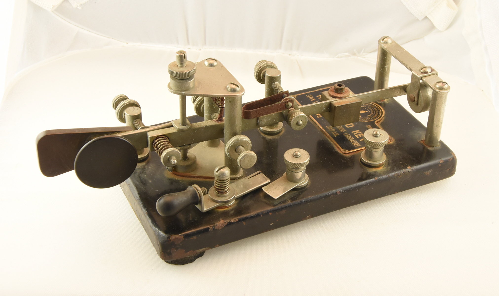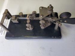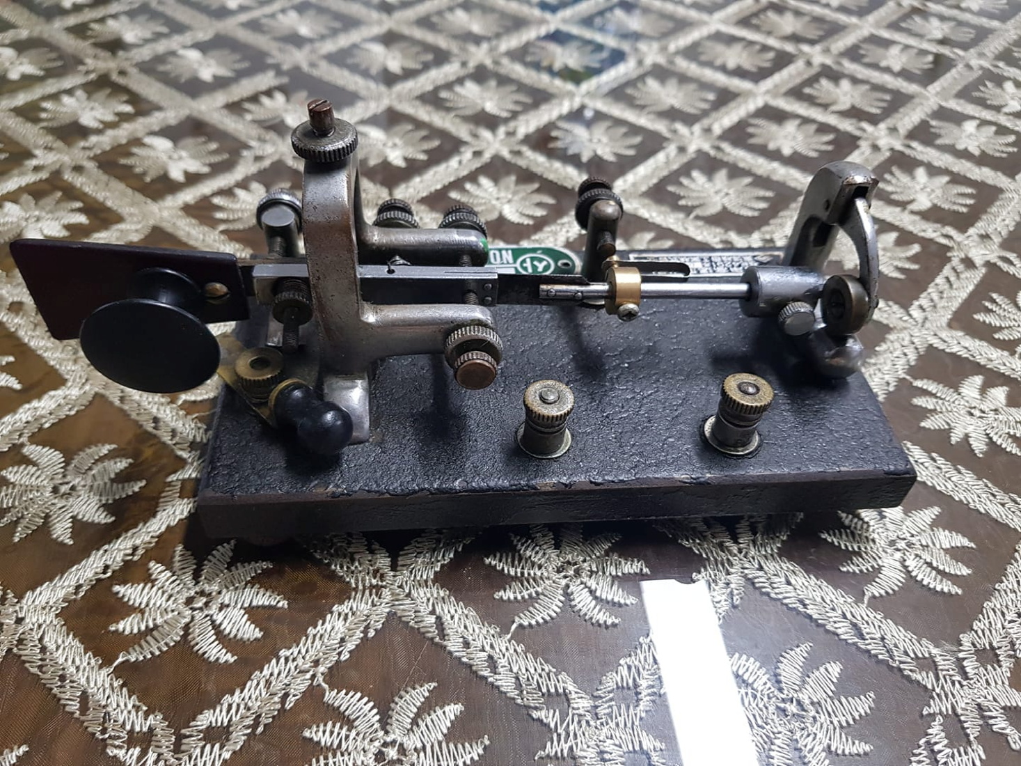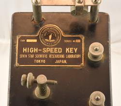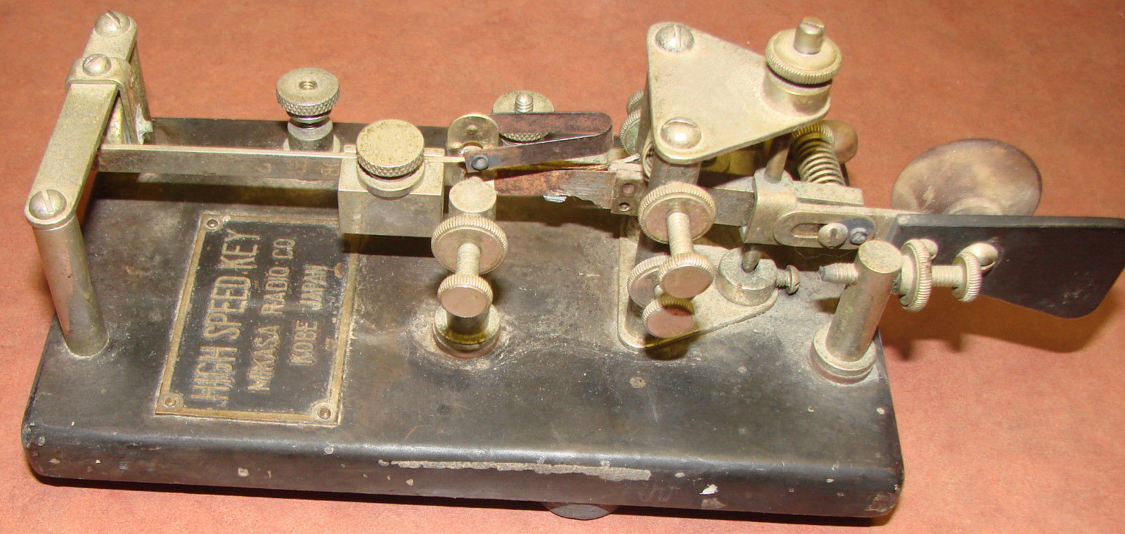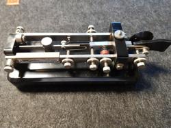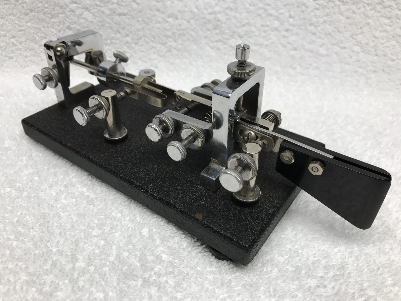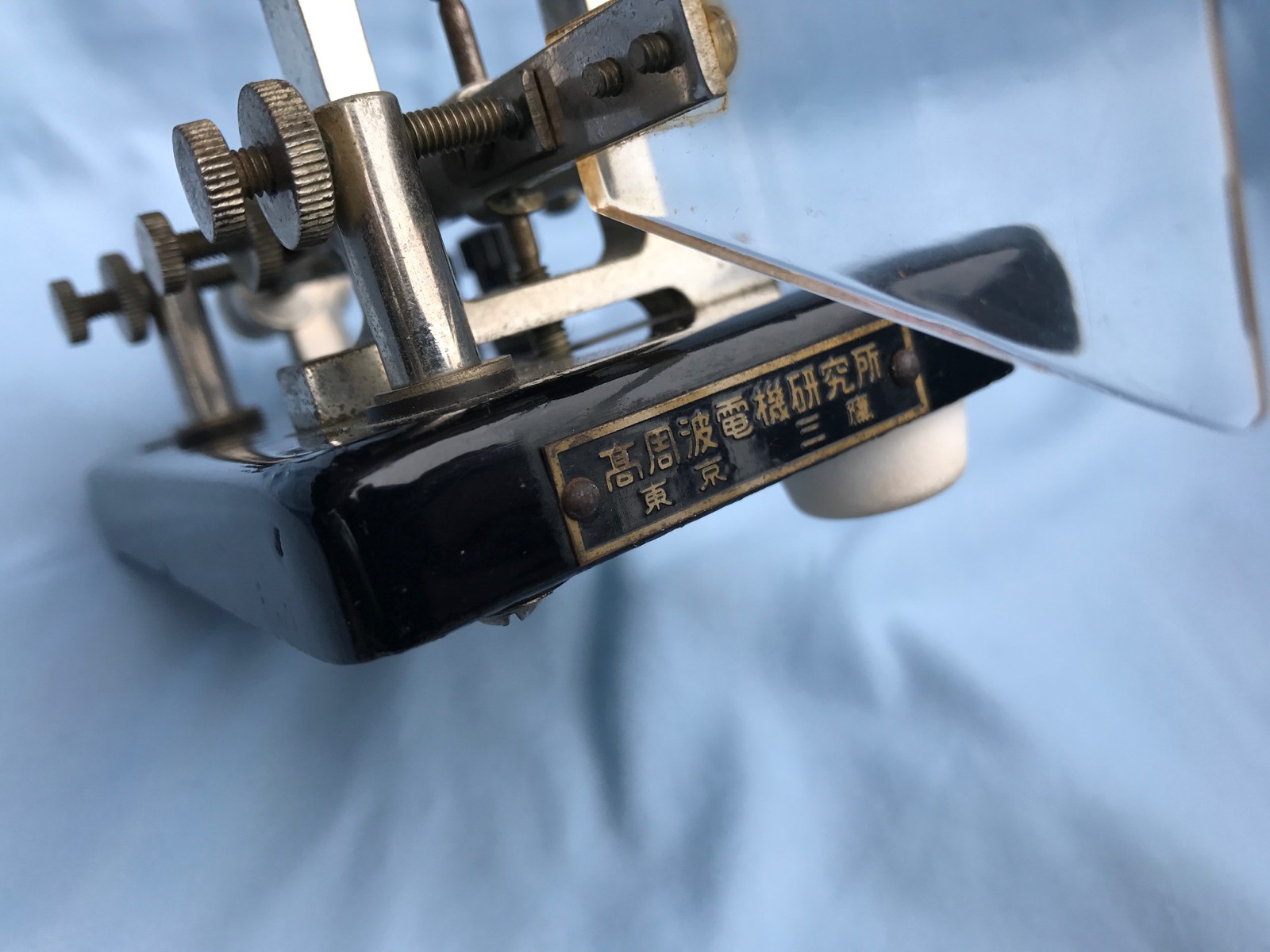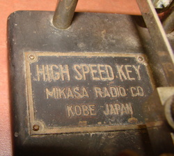 Made by Mikasa Radio Co, Kobe Japan. A Vibroplex Lightning Bug style key. Given that the nameplate is in English and the nickel plating, it was likely made after WW2.