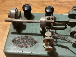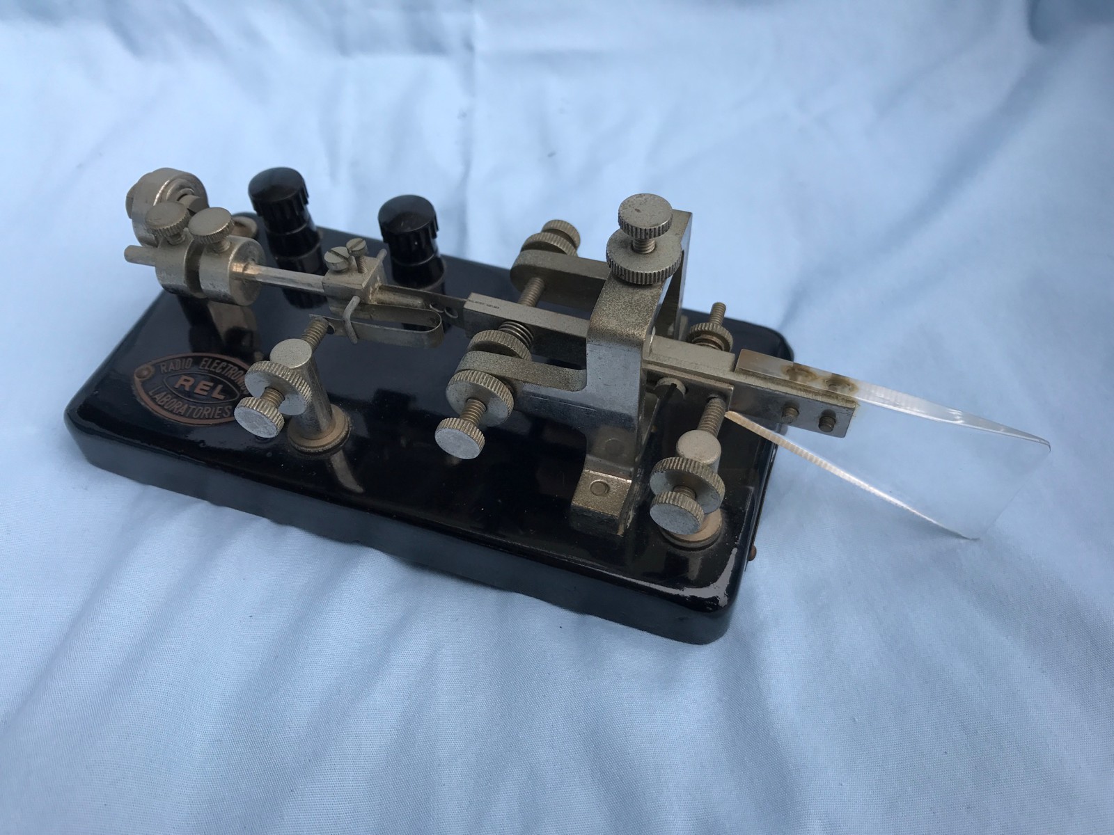 Two virtually identical bugs. One is marked "DDK". The nameplate translates to "Daido Electric Laboratories, Tokyo, Setagaya District". The second key has an English nameplate stamped "Radio Electrical Laboratories" with a second nameplate at the front of the key stamped "Kohshuha Denki Kenkyujoh, Tokyo, Mitaka", which translates to "High Frequency Electric Laboratories, Tokyo, Mitaka City". Setagaya and Mitaka are located adjacent to each other, so it's likely the two keys were made at the same machine shop. The REL key was likely sold in the US, given that it has an English nameplate.