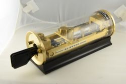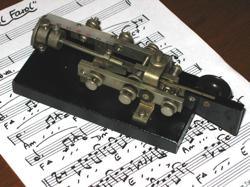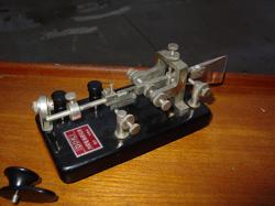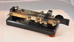 A small number of these were made in 1999. They are quite heavy so they won't move around on the table. Dot keying is accomplished by a magnetic relay at the end of the pendulum. Because of its length it's capable of sending very slow Morse Code, down to 12 words per minute !