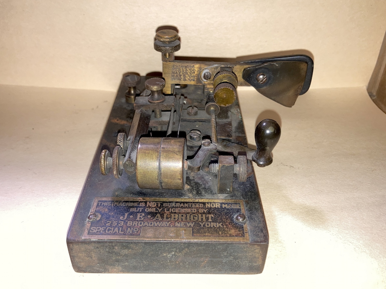 Although several different brands of instruments can be found with the Albright nameplate, probably the most common is The Improved Vibroplex, made by A to Z Electric Novelty Company in Chicago (ATOZ). It makes sense that Albright would go after this company vigorously since they used the actual Vibroplex name. It is much more common to find an ATOZ key with an Albright label than one with the original ATOZ label.