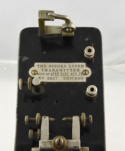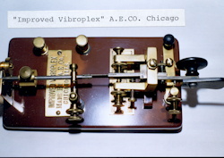 Another "Improved Vibroplex", this one made by A&E Co, Chicago. This key also has a JE Albright label so was probably made around 1911-1912. (From the Gil Schlehman, K4WDY, collection).