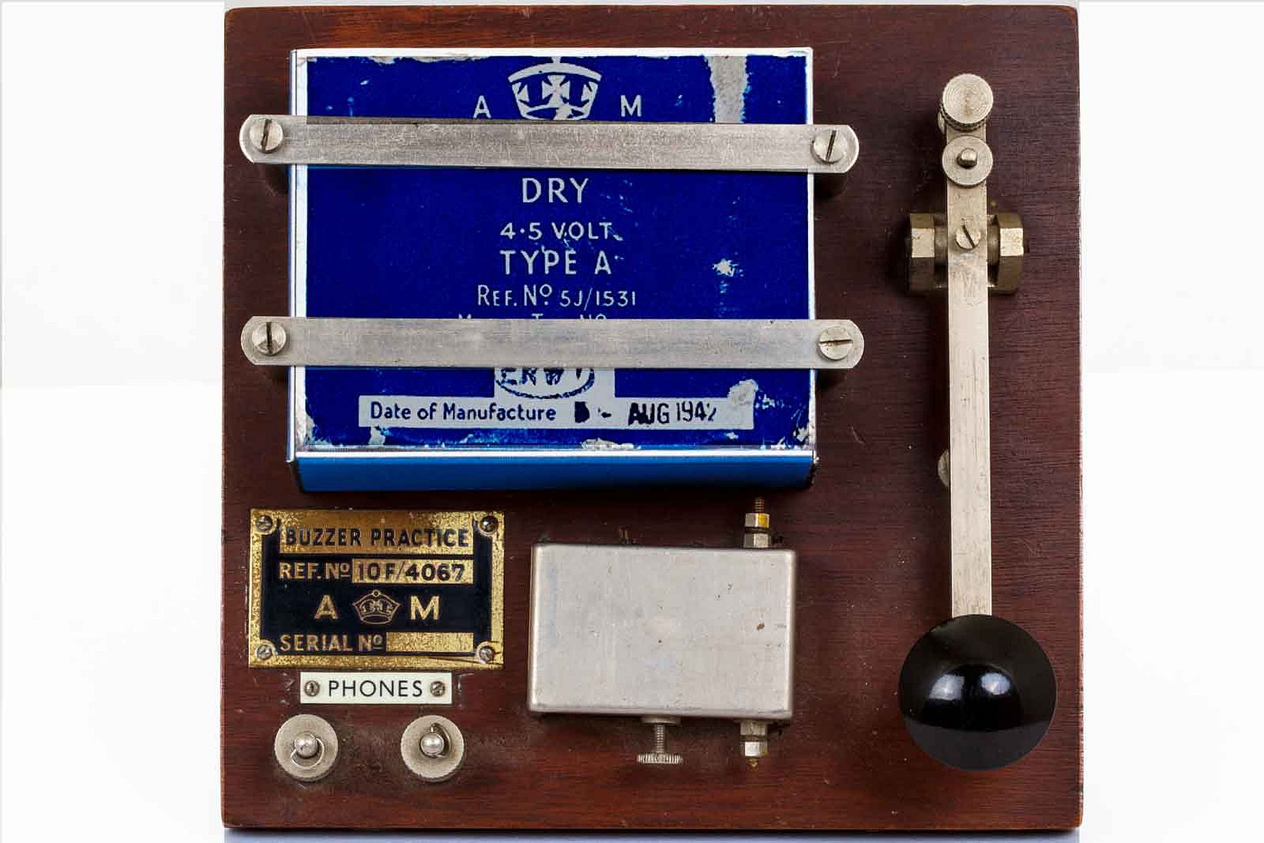 | WW2 Admiralty Key & Buzzer Code Practice Set With the Original Battery Intact | Top View of the Admiralty Code Practice Set | Admiralty Pattern Type 2342 | Admiralty Pattern Type 691 |