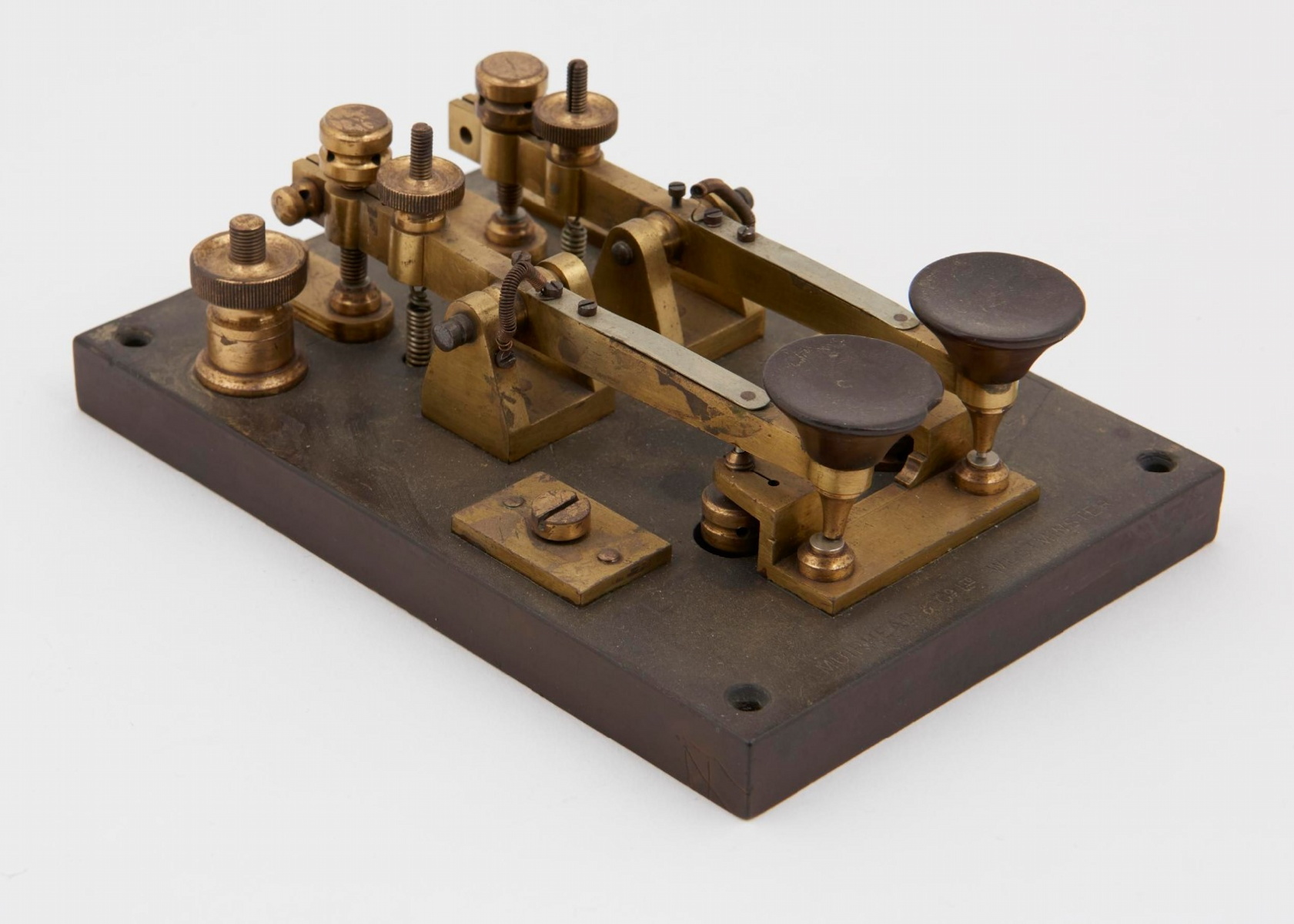 | Silvertown cable key with sheet metal strap levers. Because of the stiffness of these levers, keys with this type of lever were generally used for cable testing rather than actual cable telegraphy. |