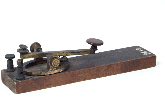 Alfred Vail's First Telegraph Key, Called the Vail Correspondent, Which Was a Simple Strap Key. 1844 (Smithsonian Museum) |