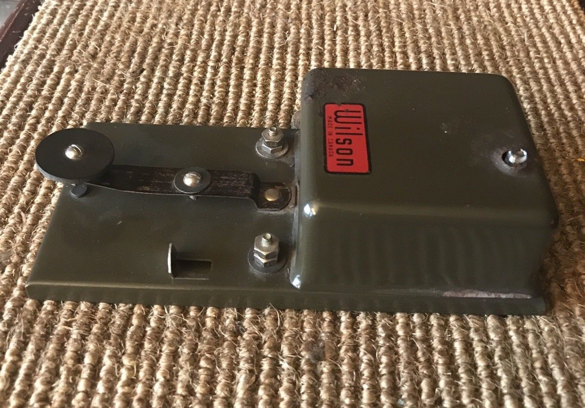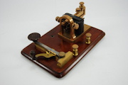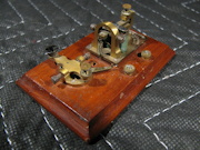 | Canadian RCAF Key & Buzzer Practice Set. Wilson Mfg. Co, Toronto | Key & Buzzer Practice Set. Wilson Mfg. Co, Toronto | Modern Bunnell Mini KOB. 1.5" wide. Ca. Made in the 1990s | Miniature KOB by Llaves Artesanas Telegrafica, Spain. Ca. Early 2000's |