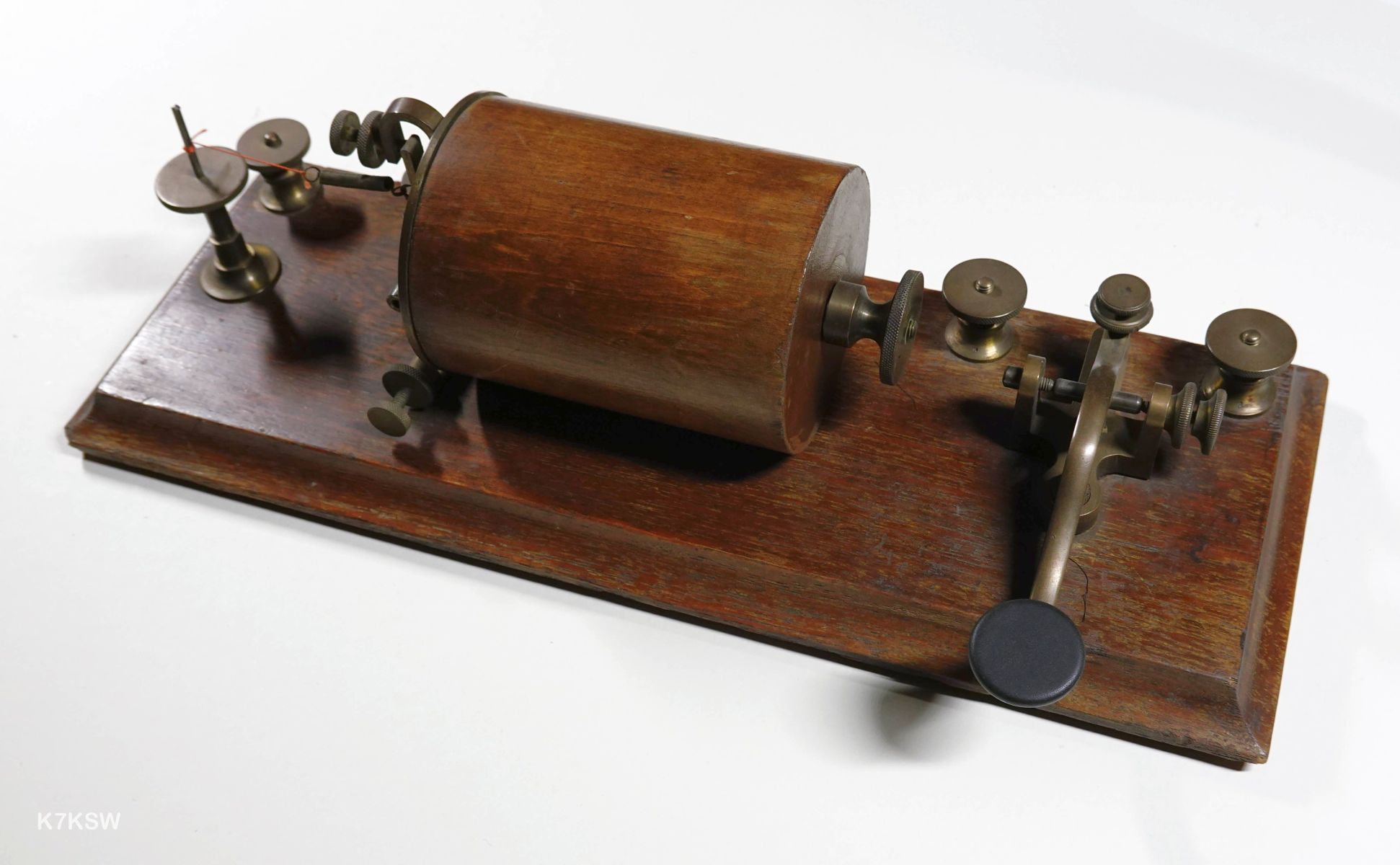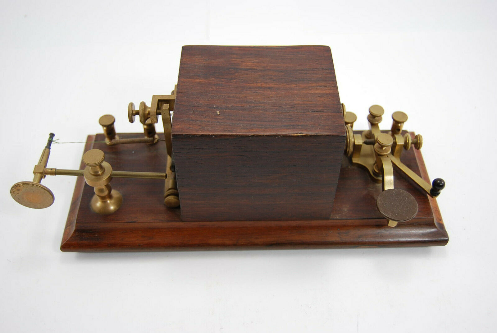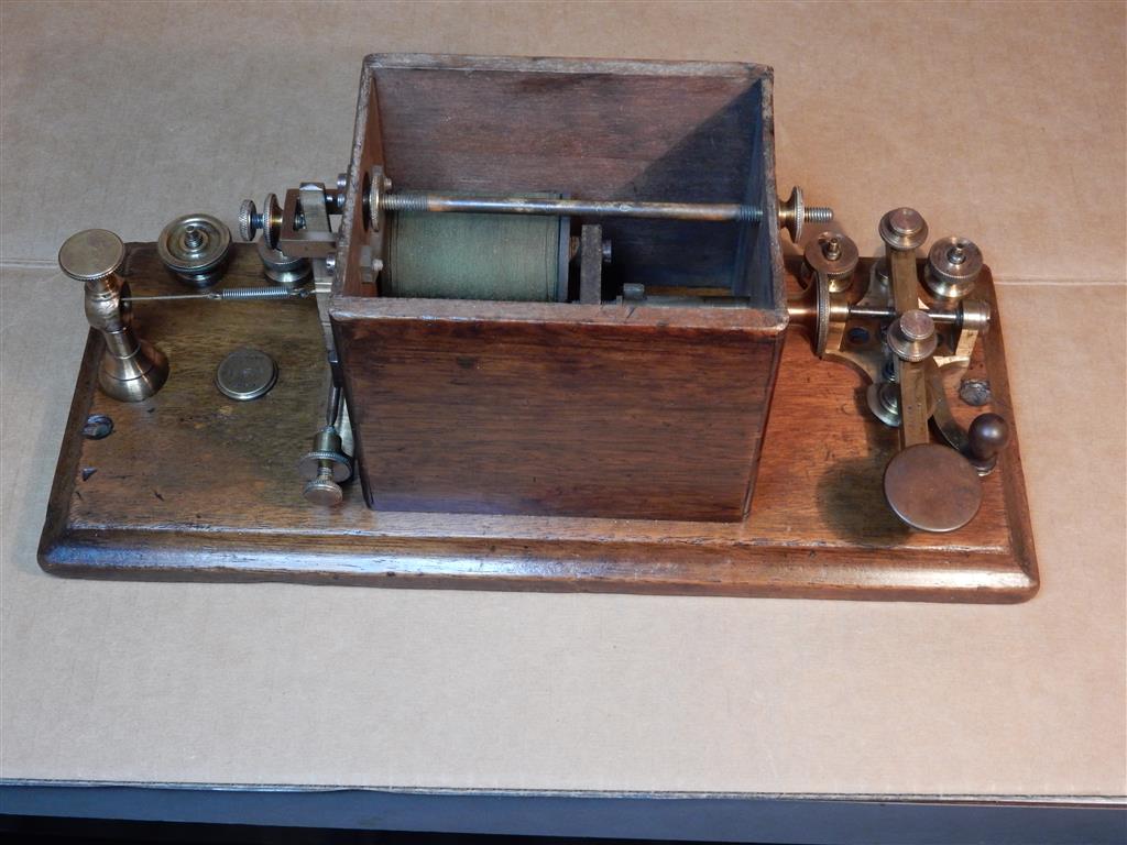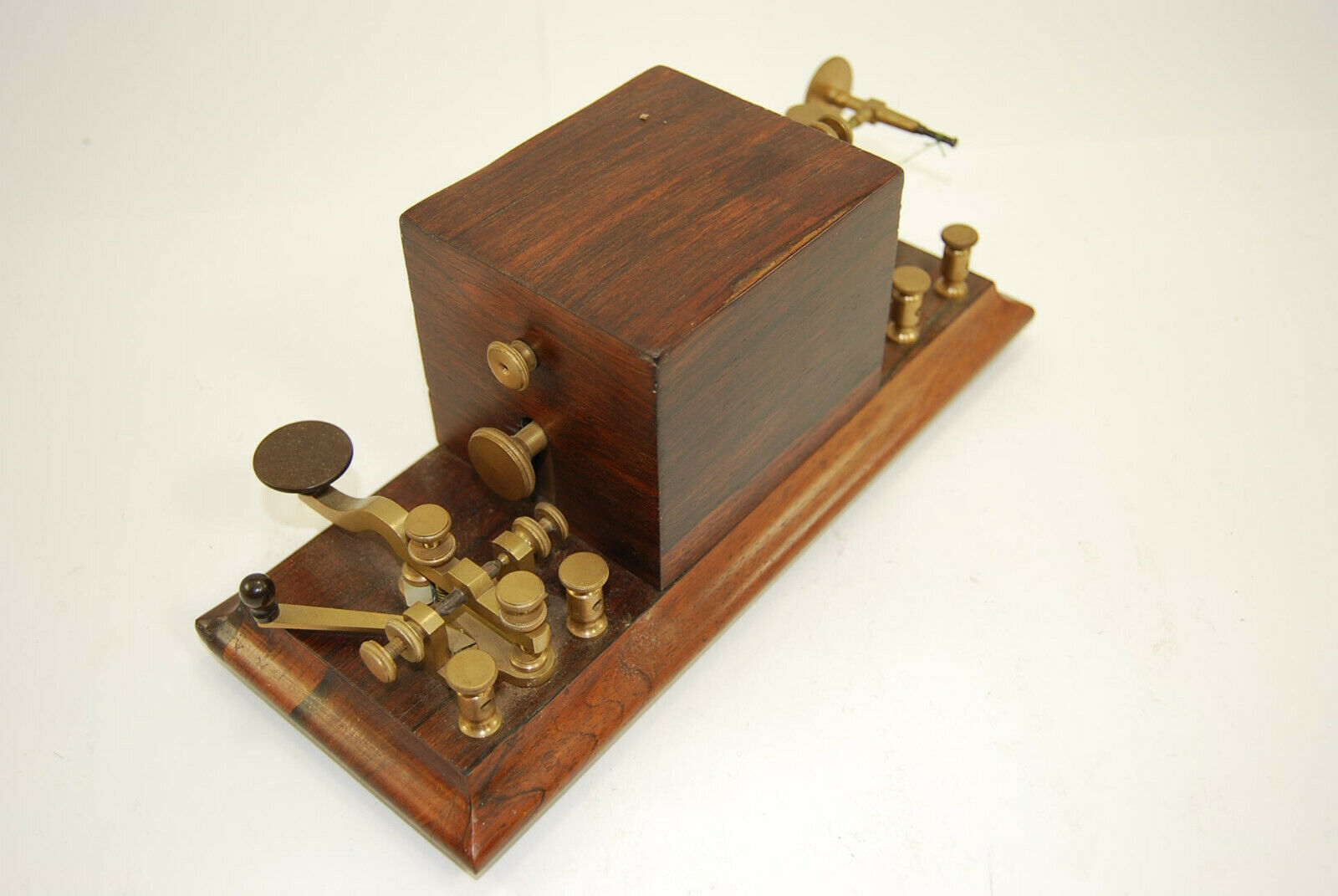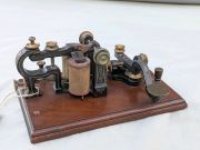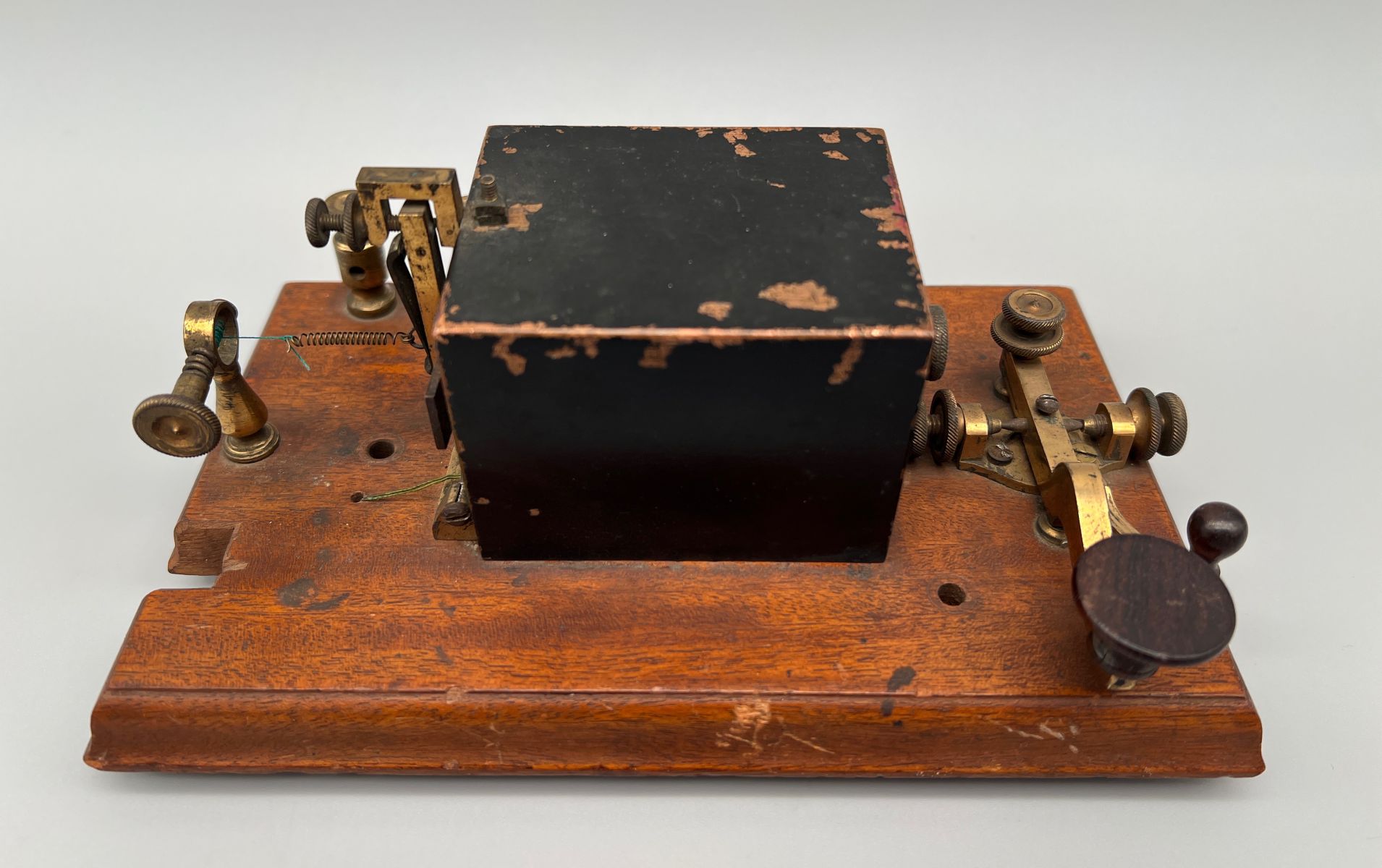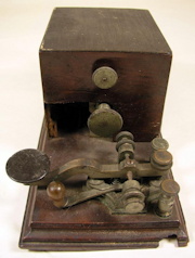 Some KOBs were designed to be simple practice sets for learning Morse Code, while others were actually used in telegraph offices. Box Relays were likely the earliest type of KOB to be used in telegraph offices. With a Box Relay, the sounder electromagnets are enclosed in a wooden box that was mounted on the wooden base with a telegraph key. The box acted as a sound amplifier.