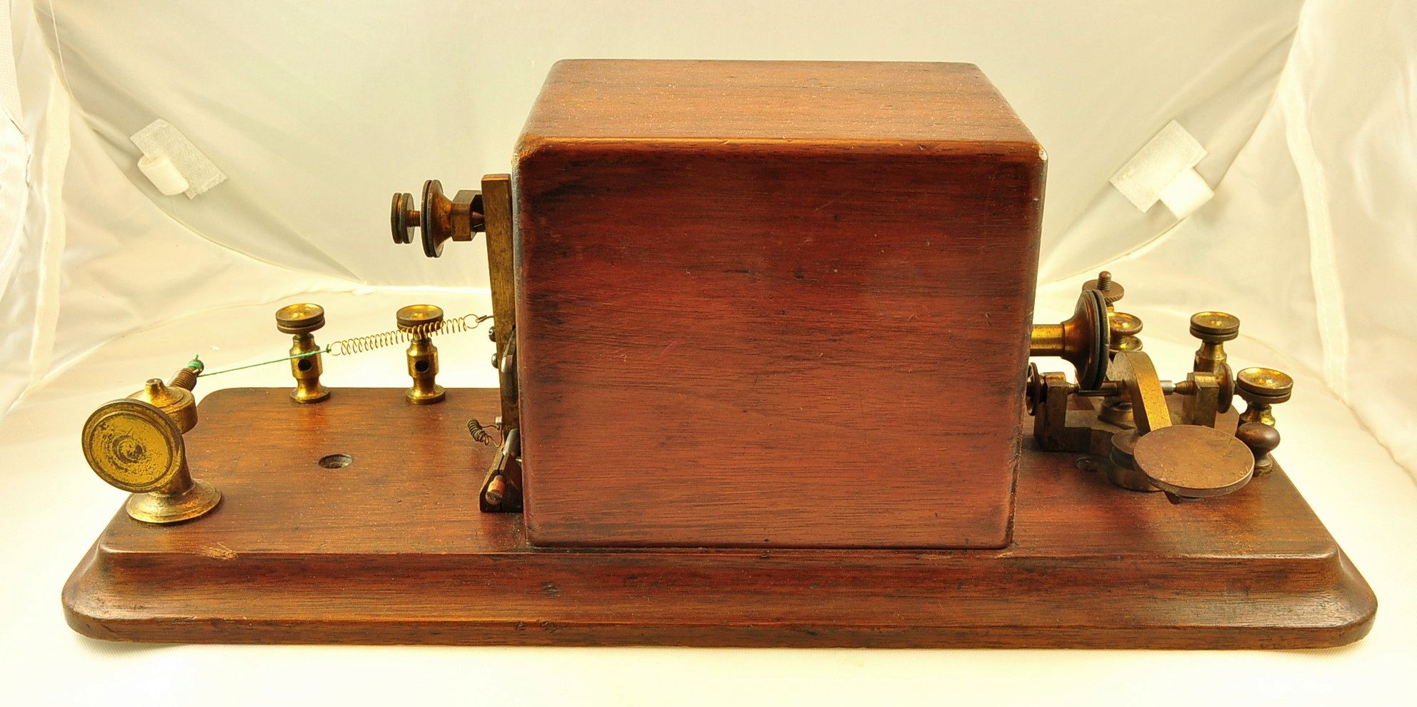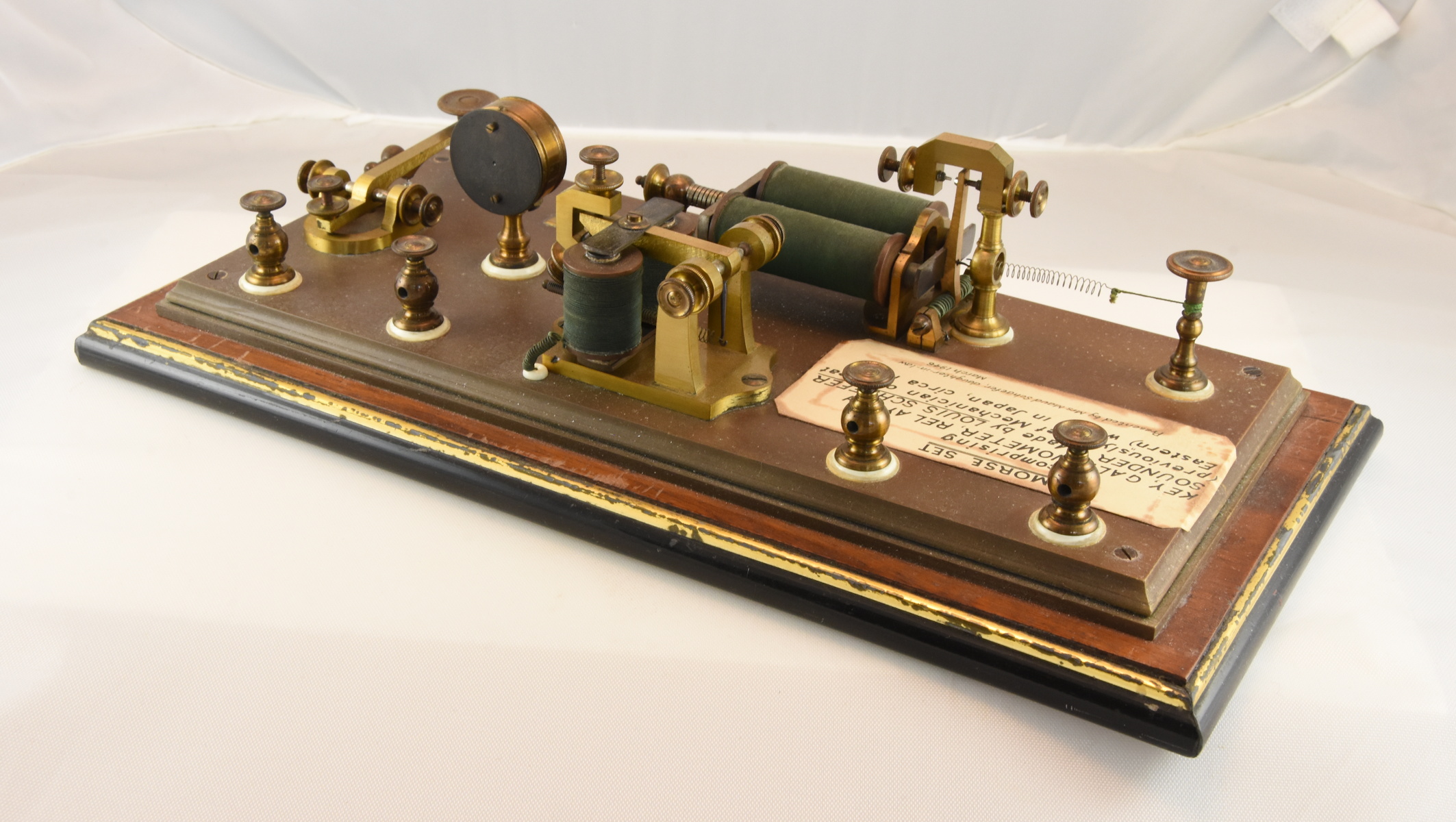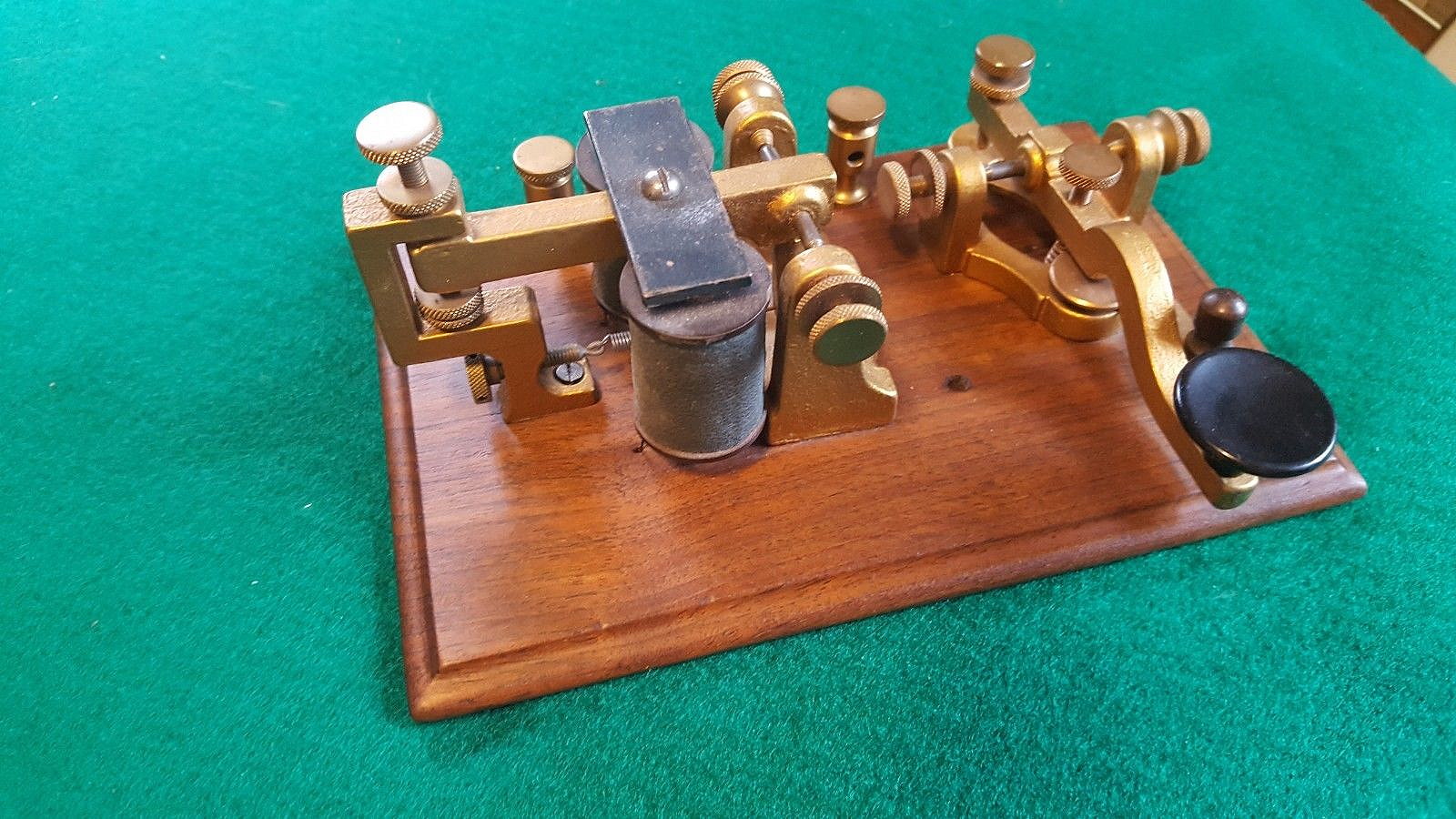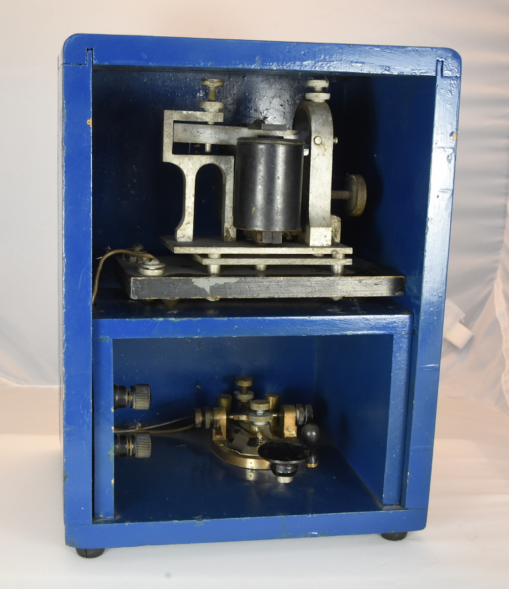 Some KOBs were designed to be simple practice sets for learning Morse Code, while others were actually used in telegraph offices. Box Relays were likely the earliest type of KOB to be used in telegraph offices. With a Box Relay, the sounder electromagnets are enclosed in a wooden box that was mounted on the wooden base with a telegraph key. The box acted as a sound amplifier.