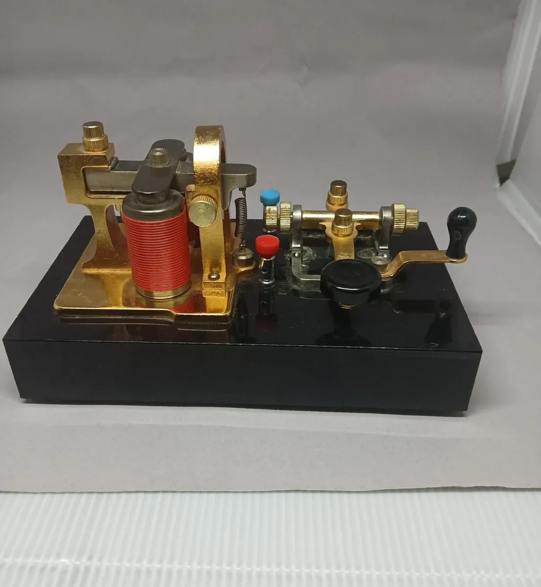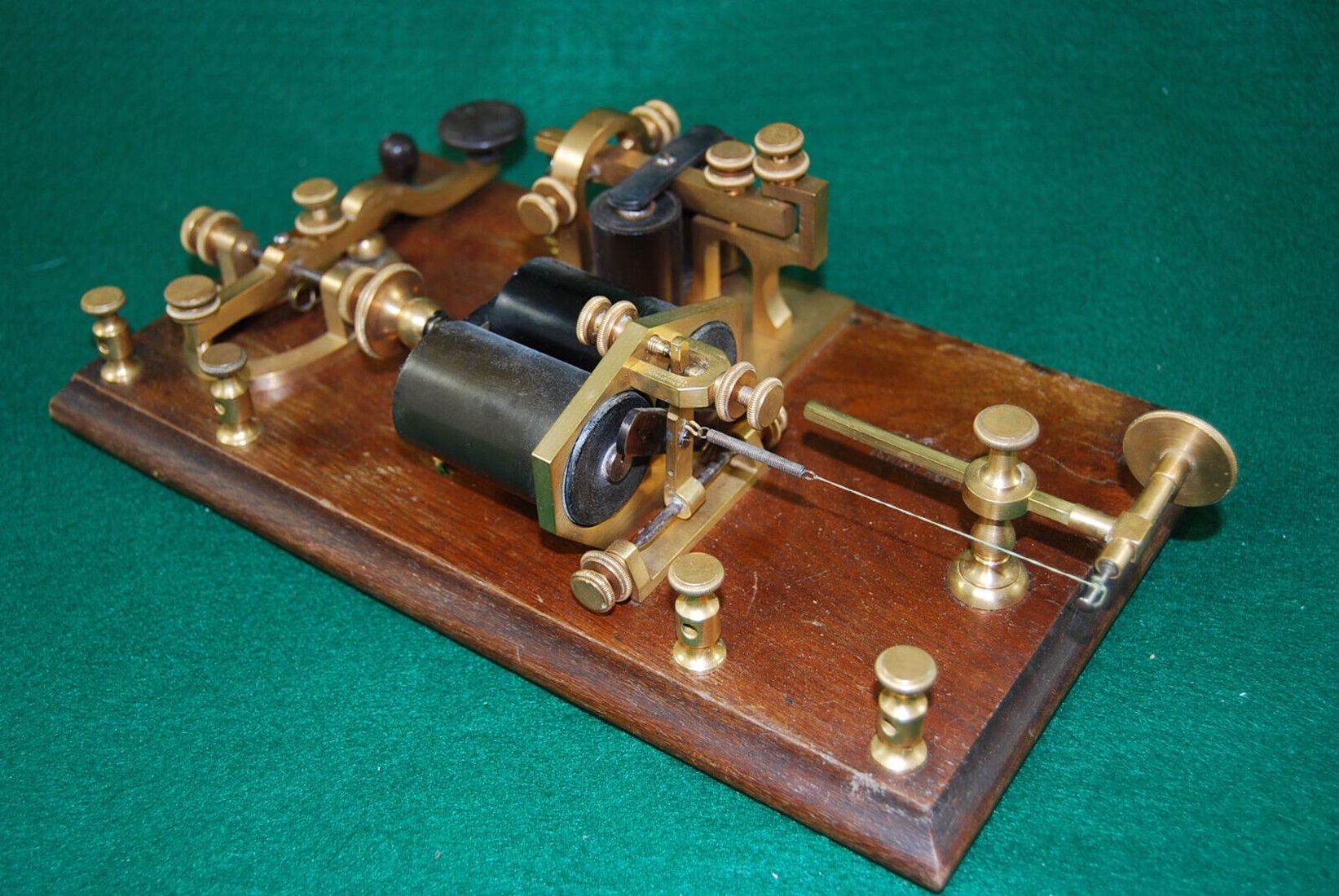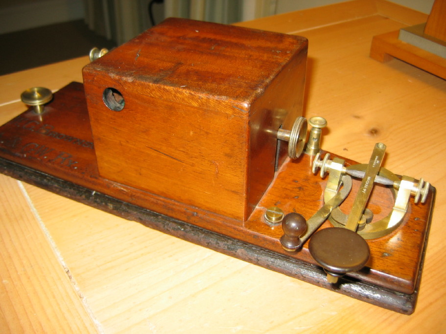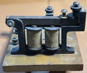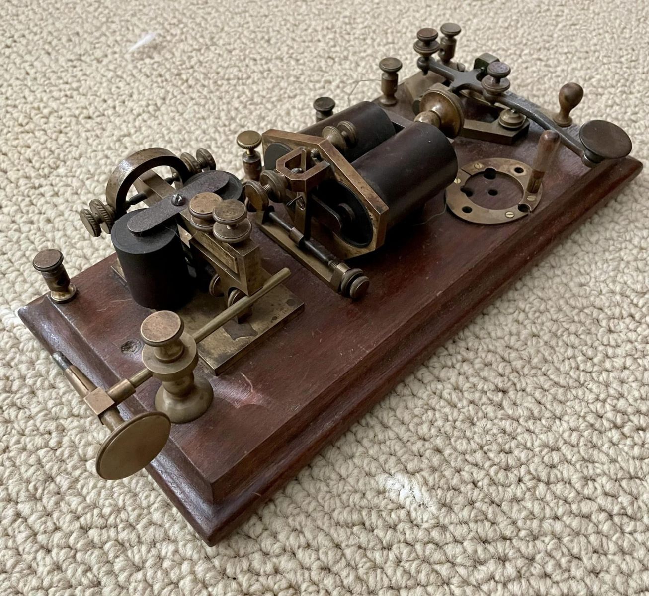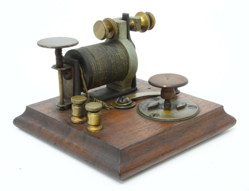 Some KOBs were designed to be simple practice sets for learning Morse Code, while others were actually used in telegraph offices. Box Relays were likely the earliest type of KOB to be used in telegraph offices. With a Box Relay, the sounder electromagnets are enclosed in a wooden box that was mounted on the wooden base with a telegraph key. The box acted as a sound amplifier.