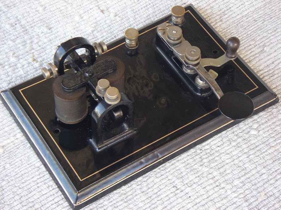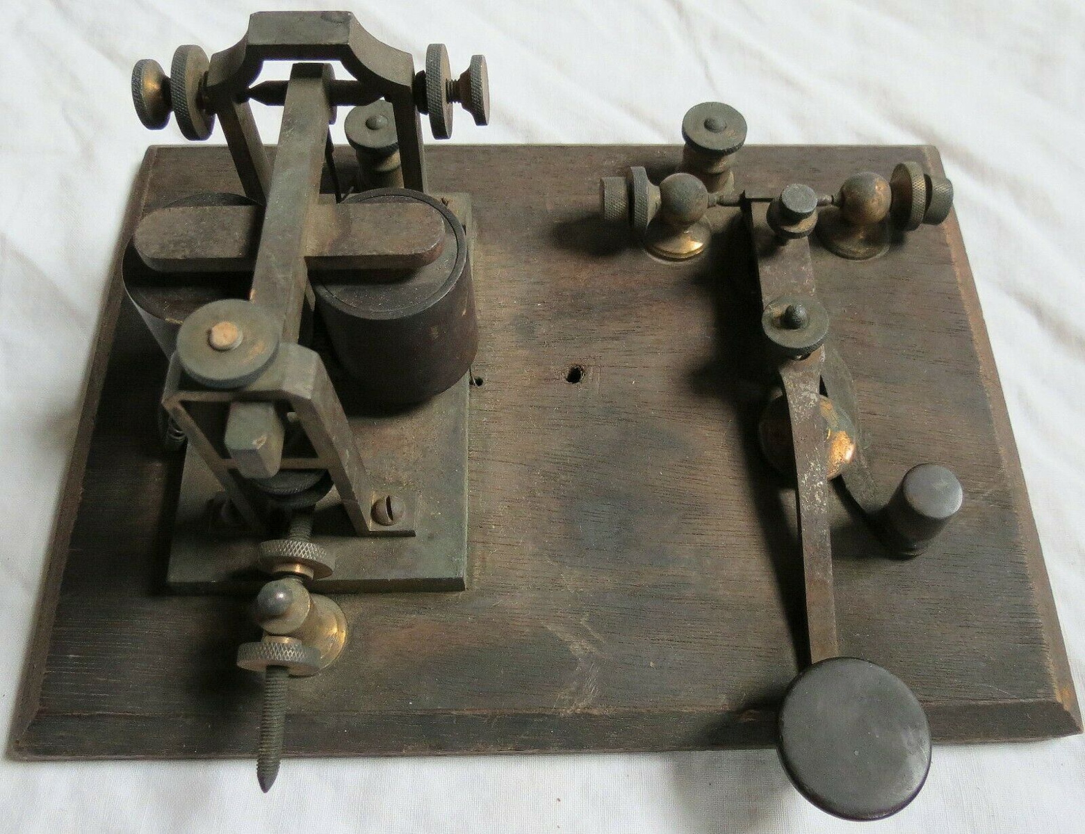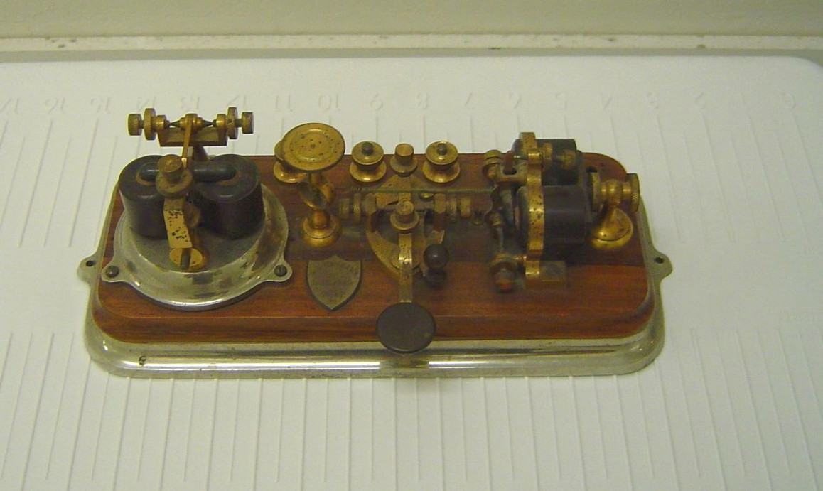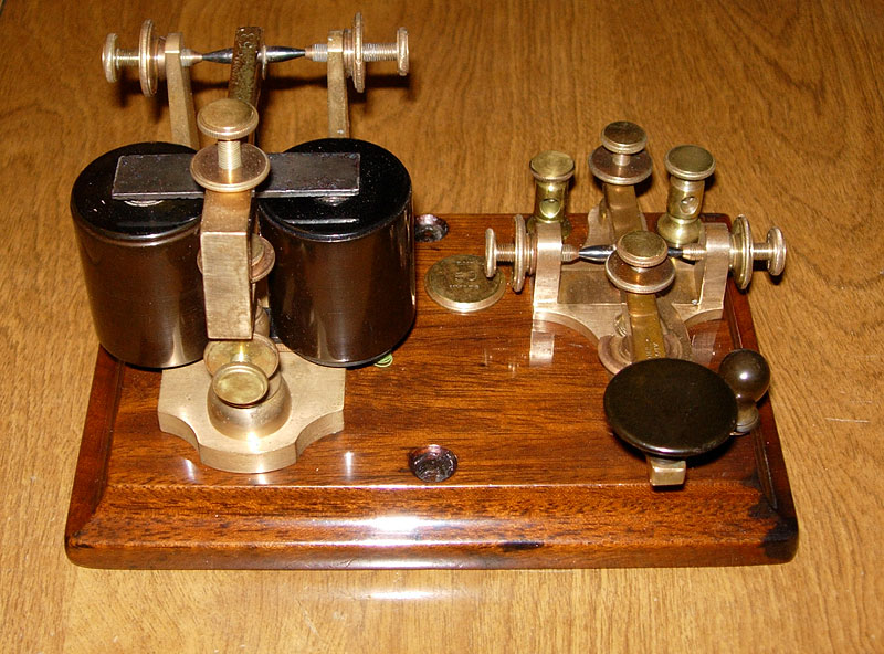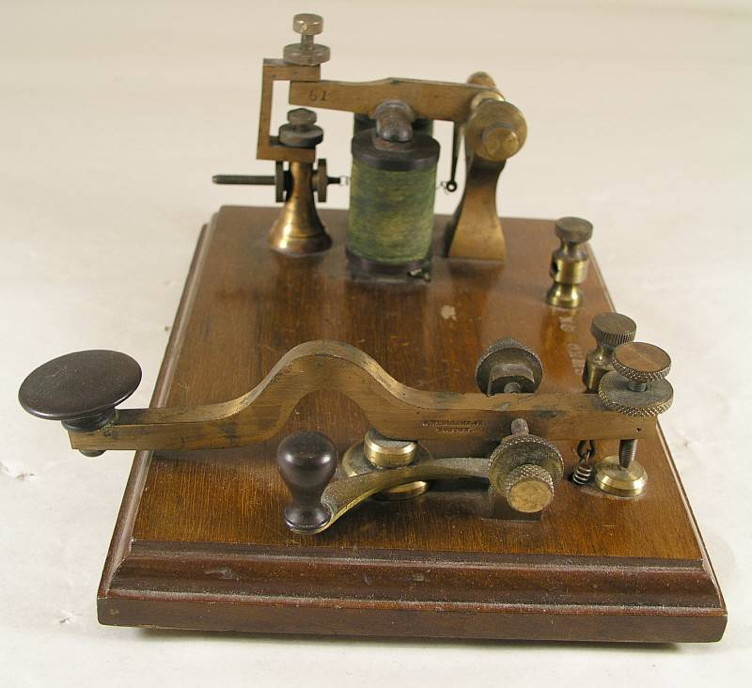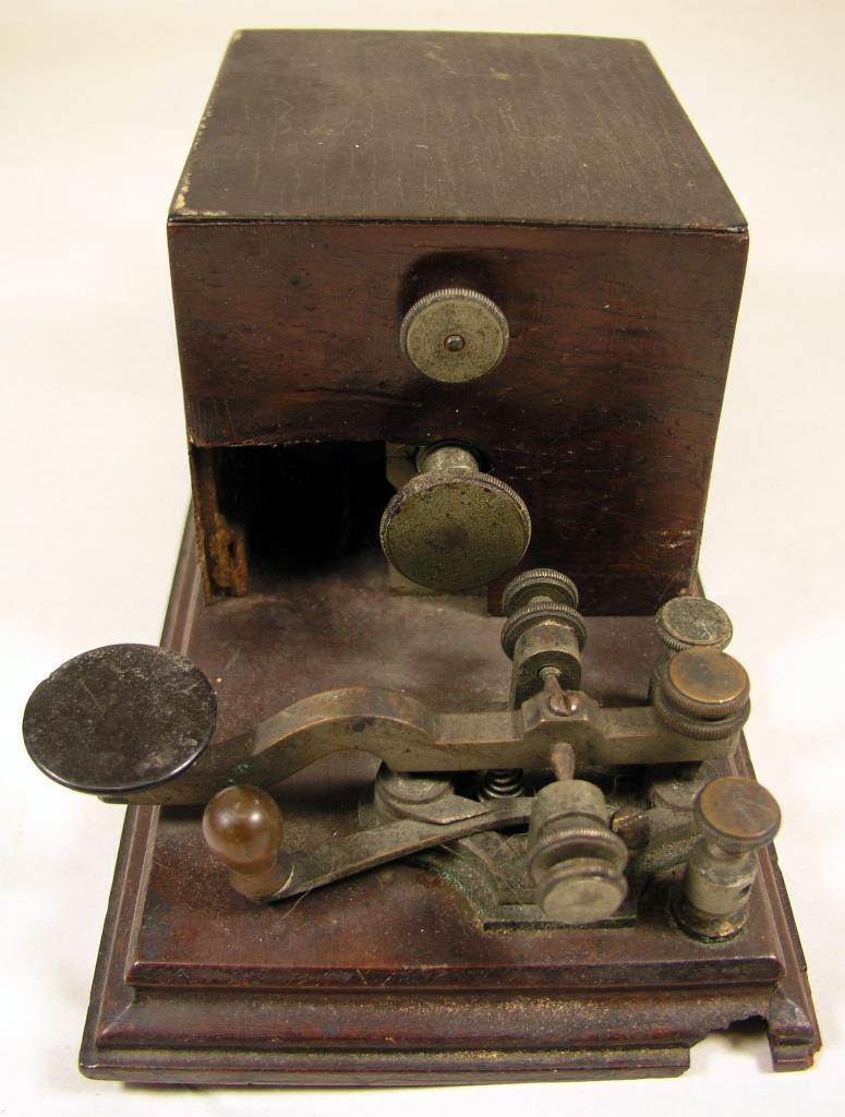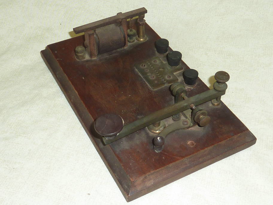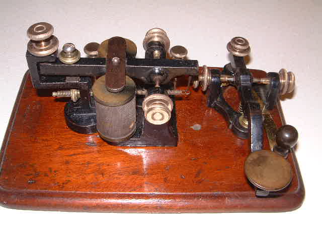 KOB stands for Key On Board. A KOB has a key and a sounder mounted on a single base. The first KOBs appeared in the 1860's. Before that, the individual components of a telegraph office, such as the key, sounder, and relay, would be mounted separately on the operator's table.