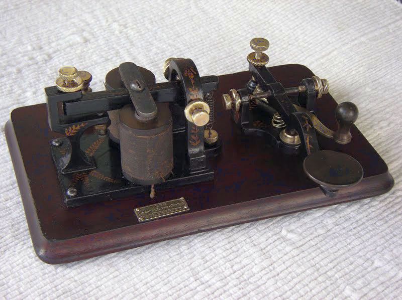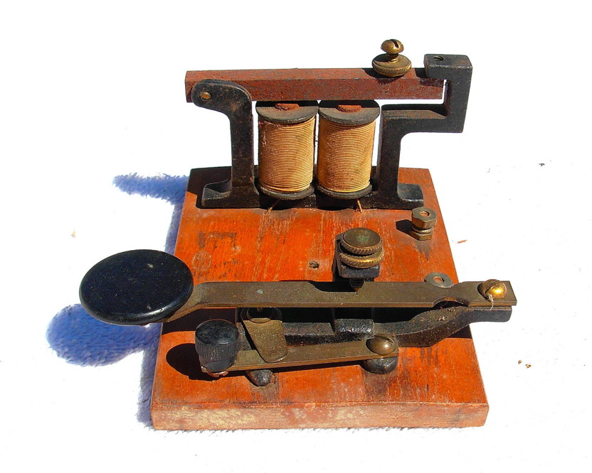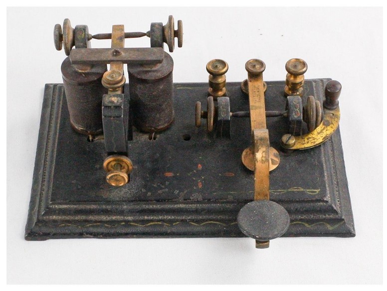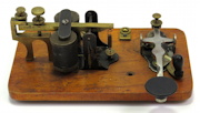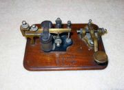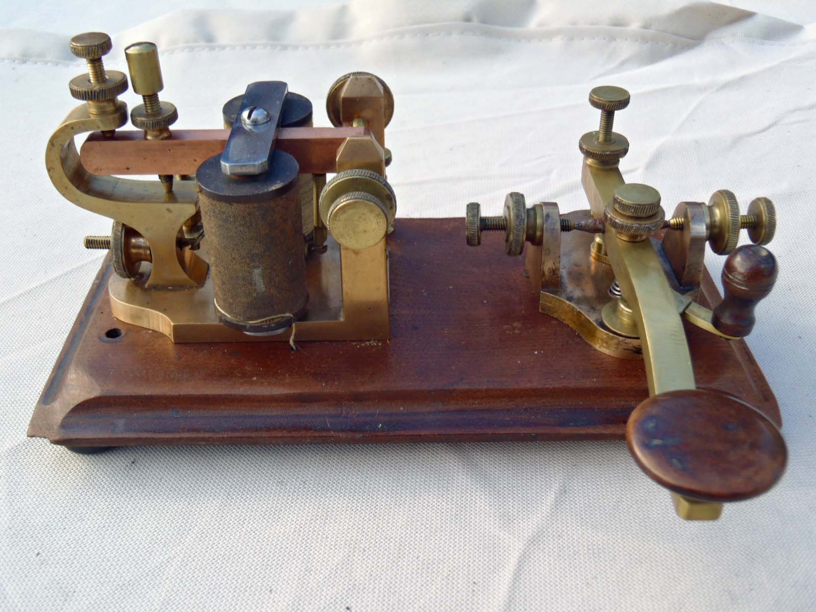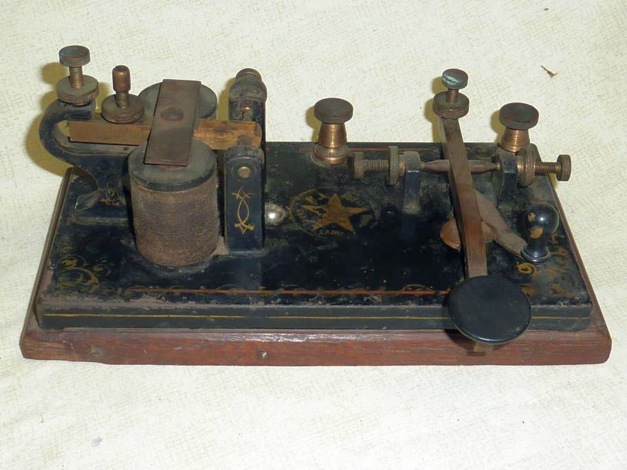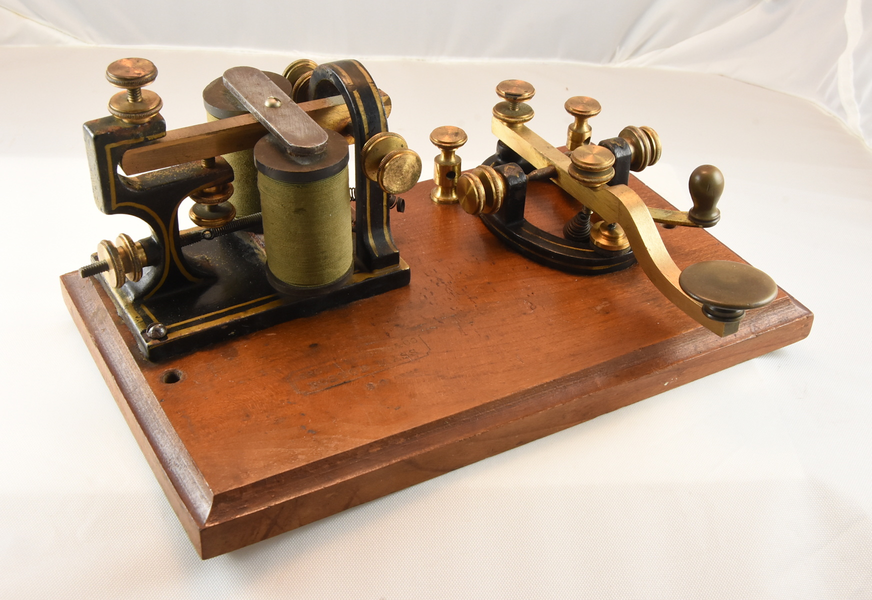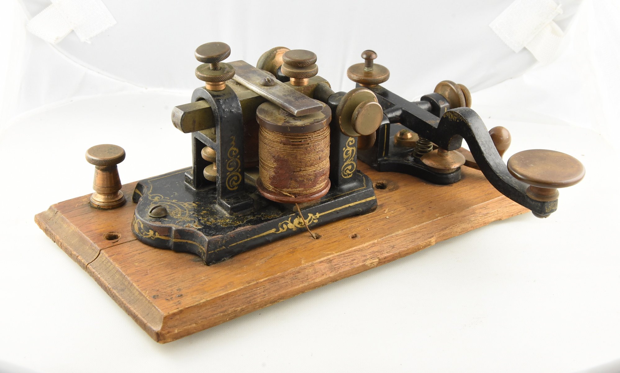 KOB stands for Key On Board. A KOB has a key and a sounder mounted on a single base. The first KOBs appeared in the 1860's. Before that, the individual components of a telegraph office, such as the key, sounder, and relay, would be mounted separately on the operator's table.