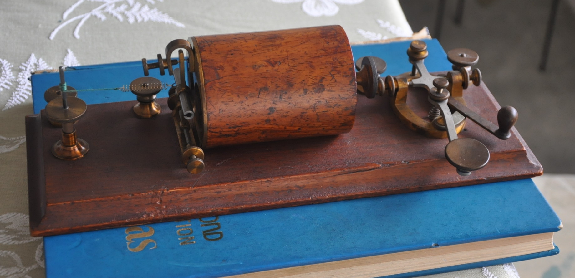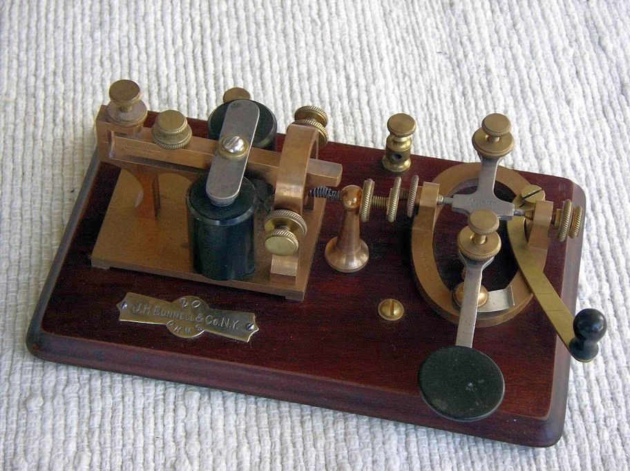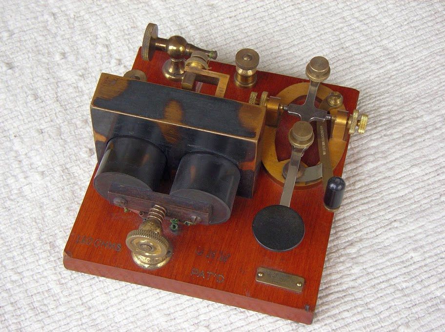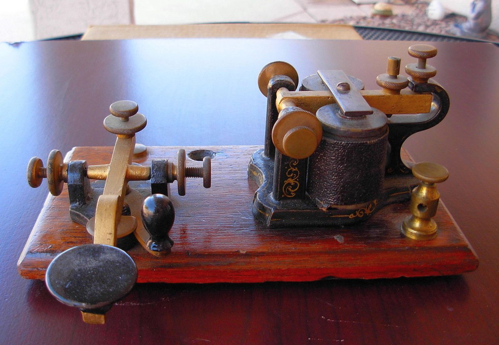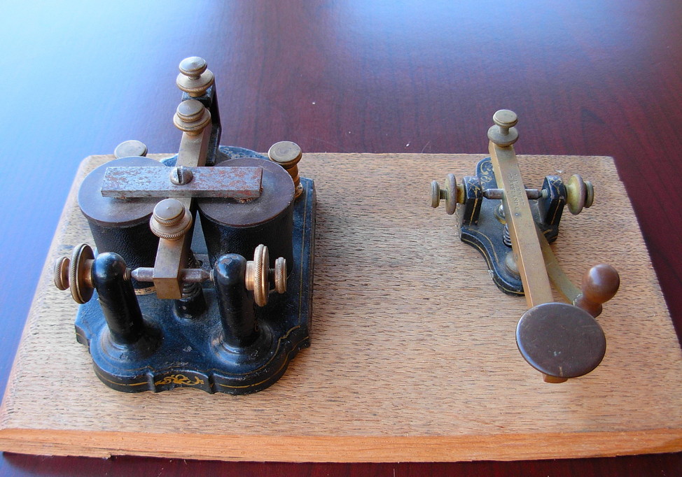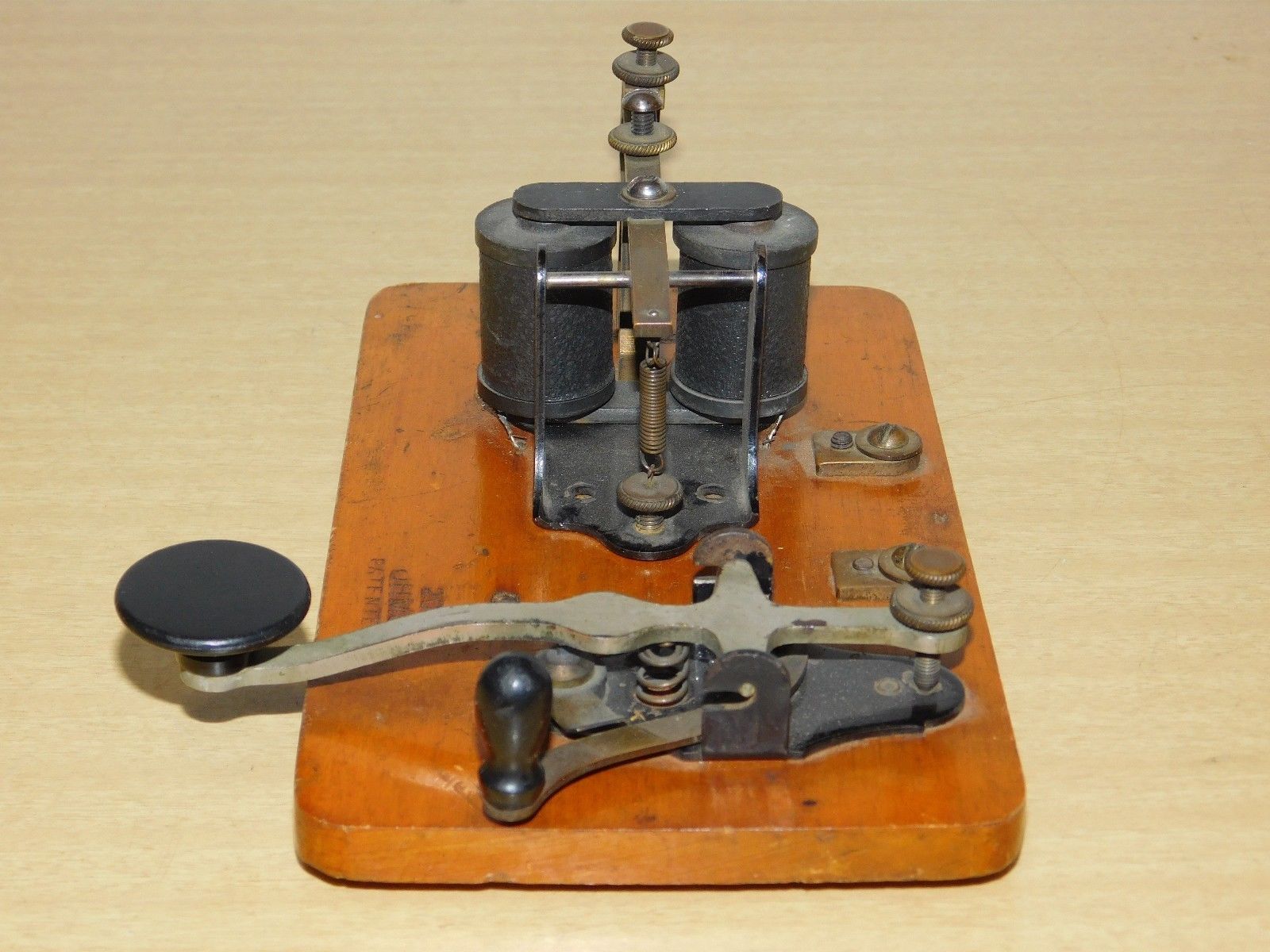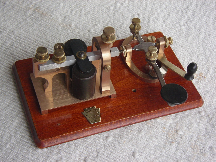 KOB stands for Key On Board. A KOB has a key and a sounder mounted on a single base. The first KOBs appeared in the 1860's. Before that, the individual components of a telegraph office, such as the key, sounder, and relay, would be mounted separately on the operator's table.