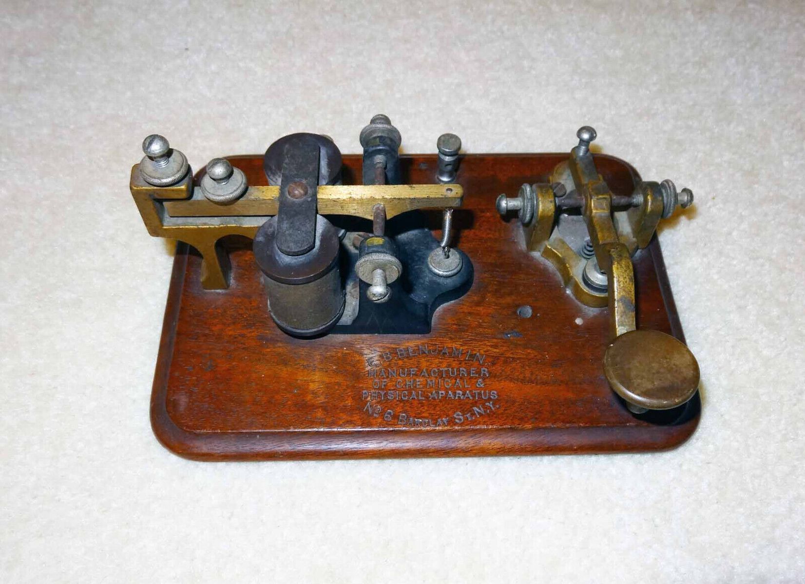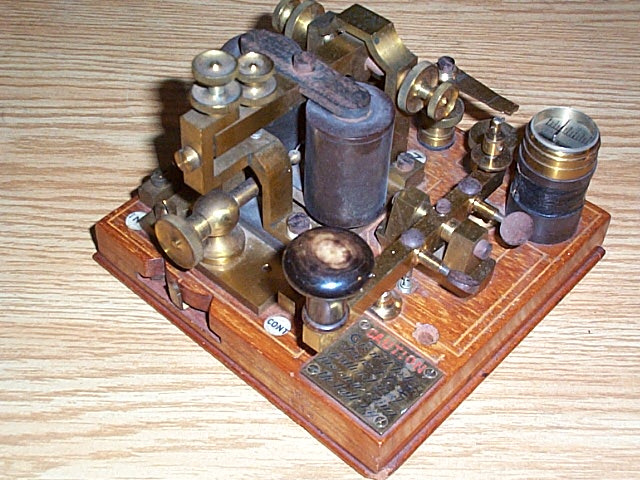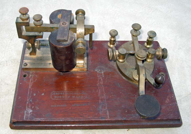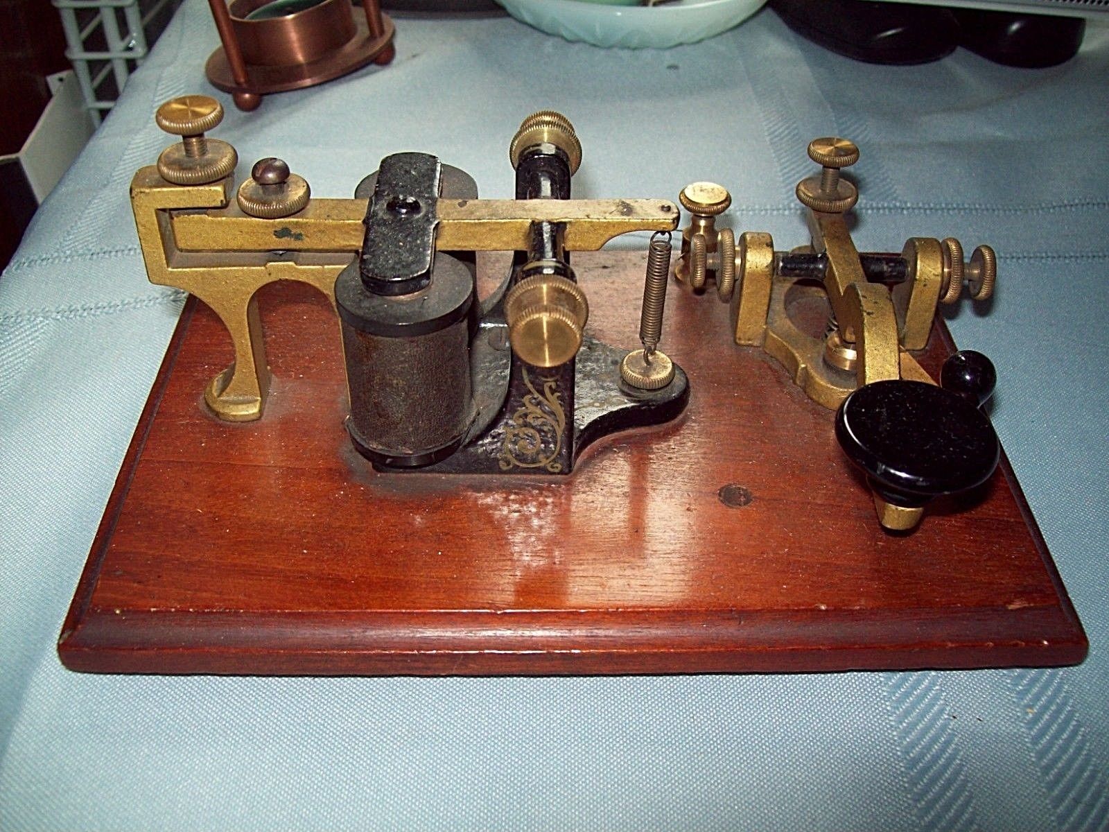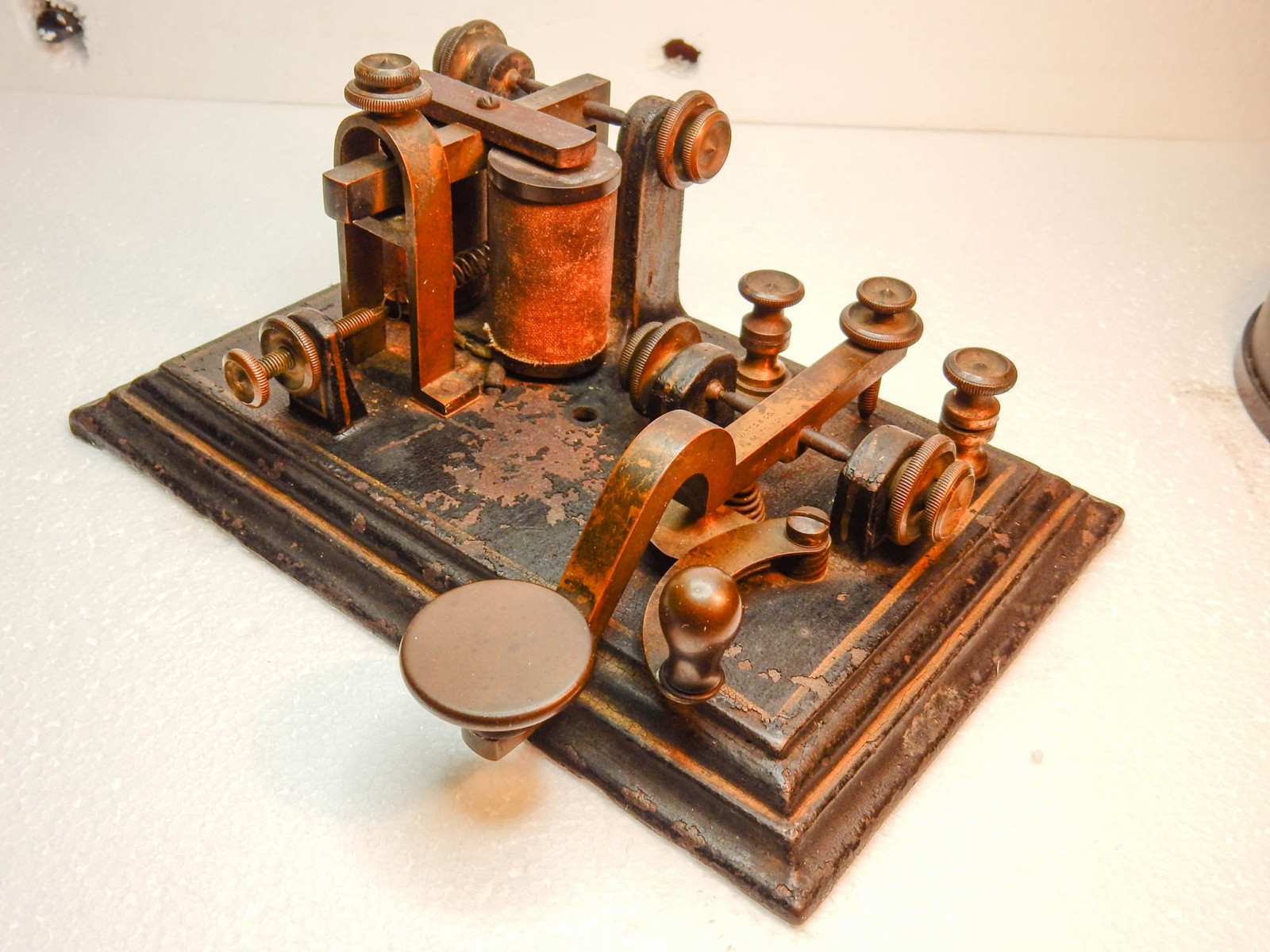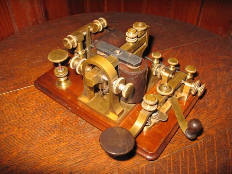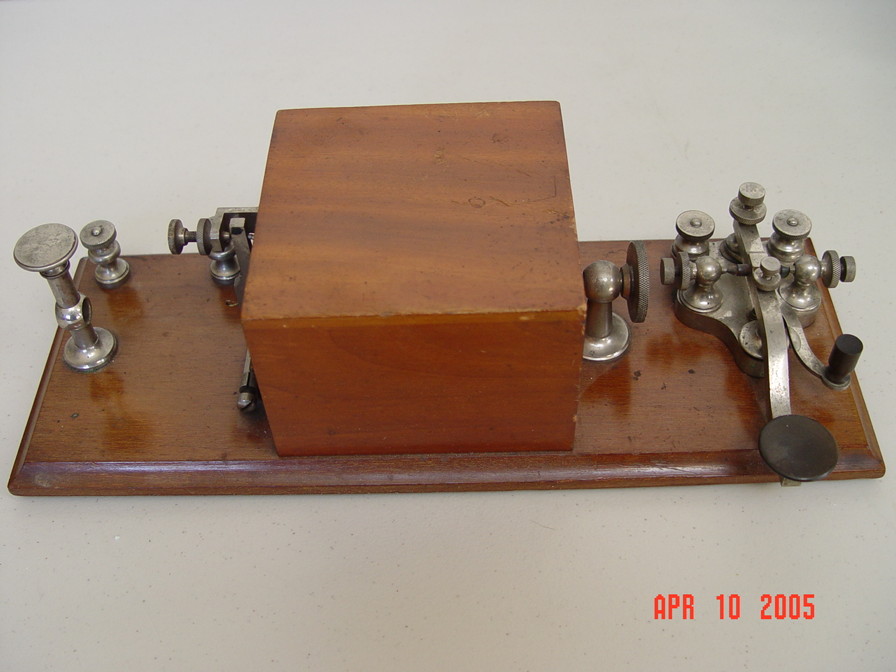 | E.S. Greeley Box Relay with Victor Key, NY. Ca. 1880's | Electrical Supply Co, NY. Ca. 1880's | Top View of the Electrical Supply Co KOB Showing the Name Stamp | C.H. DuBois Box Relay, NY. Ca. 1880's |