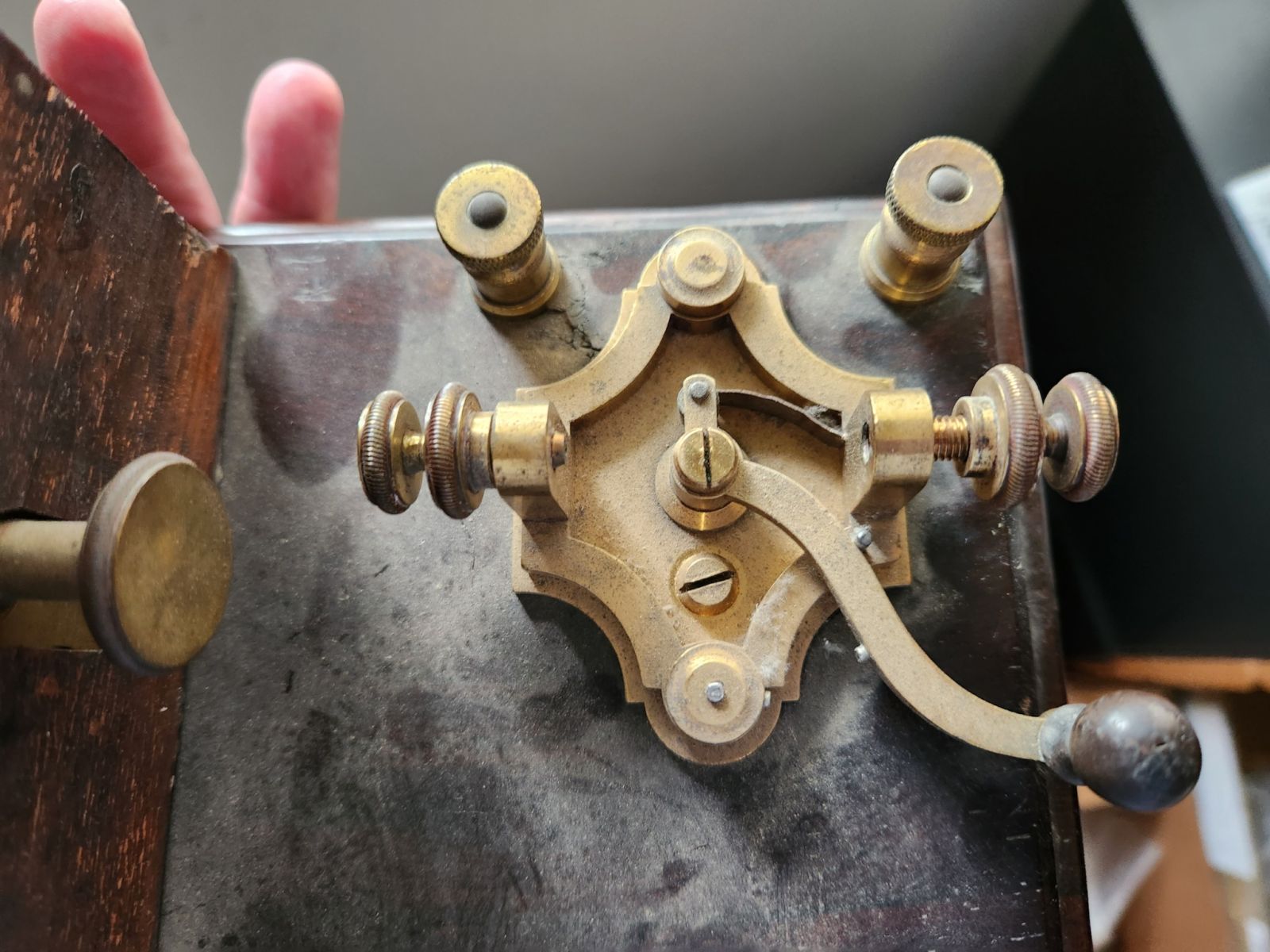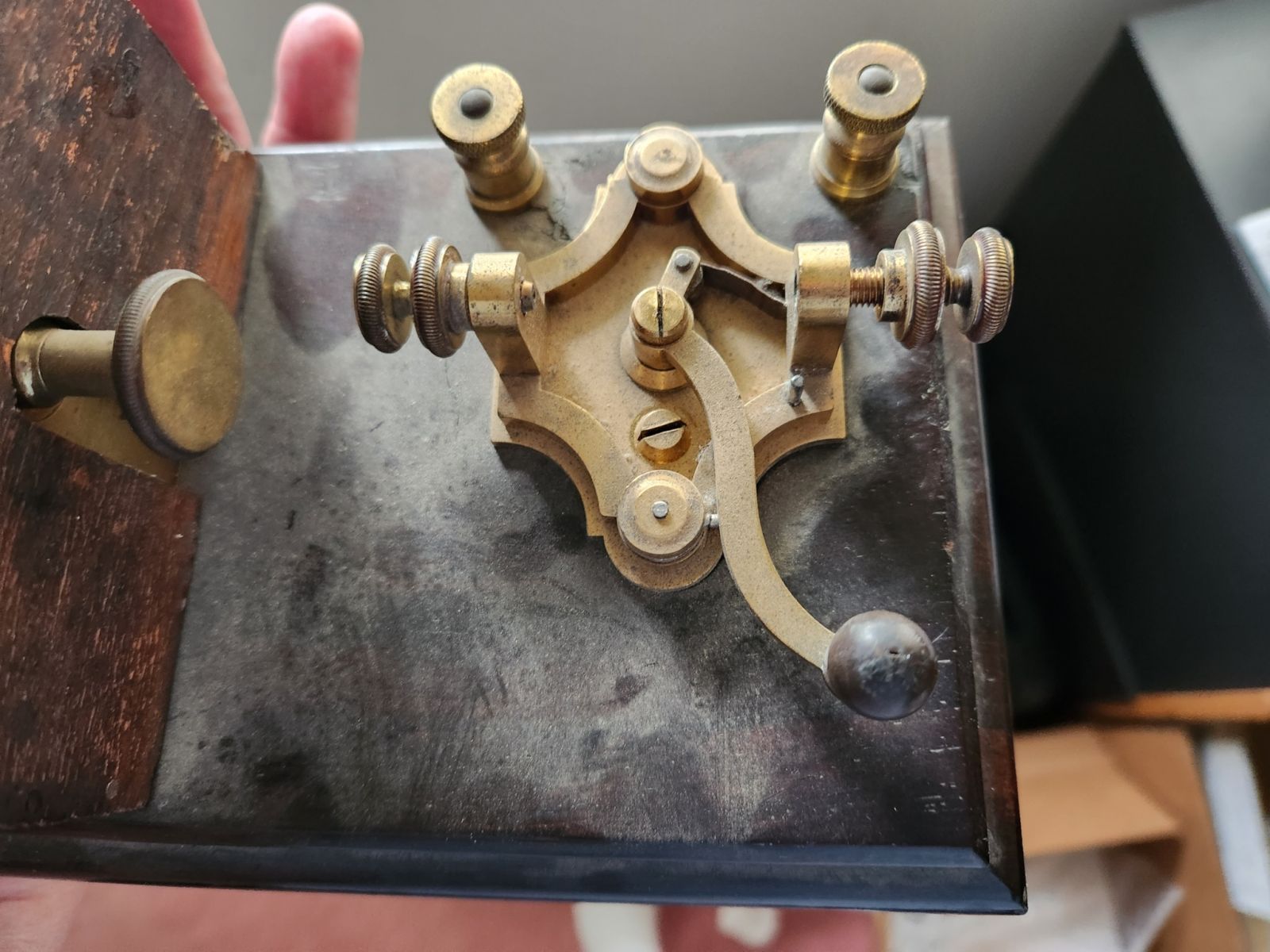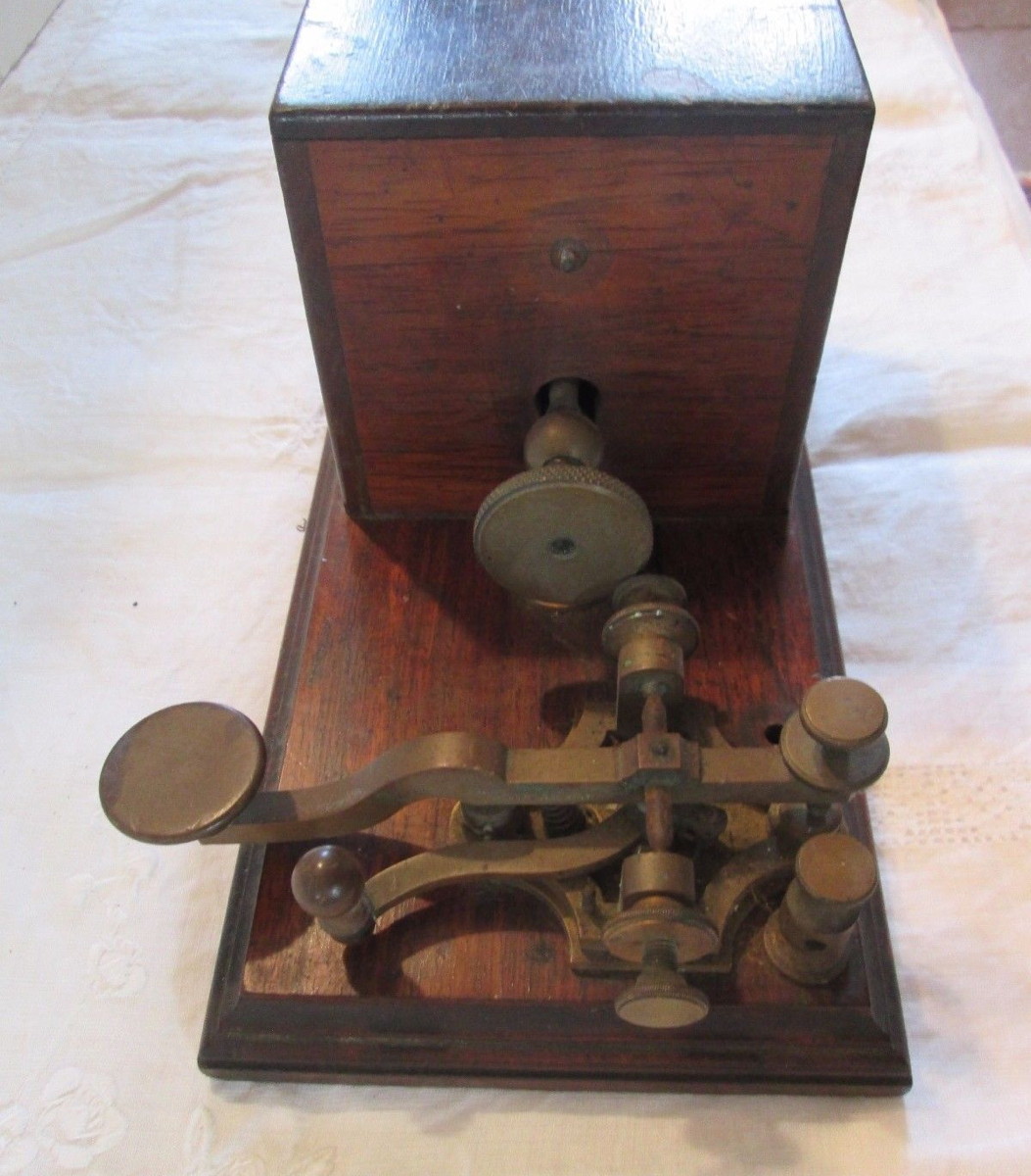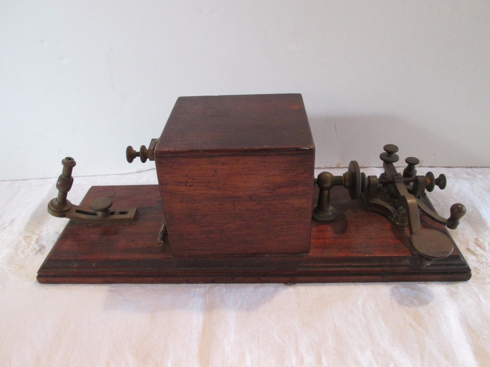 | Another Lyman KOB With Gold Painted Lever | Western Electric Private Line Set with Steiner Key, Chicago. Ca. Late 1880's | Western Electric Box Relay with Steiner Key. Ca. Late 1880's | Another View of the Steiner Key Box Relay |