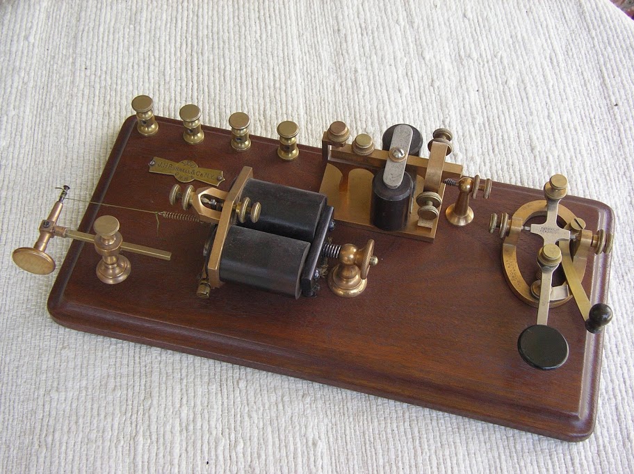 | Top View of the Williams KOB | Box Relay by Electrical Improvement Co, Chicago. Ca. 1872 | Key is Marked "A.S. Wetmore, Maker" | Combo Set by George Bliss & Western Electric, Chicago. Ca. Early 1870's |