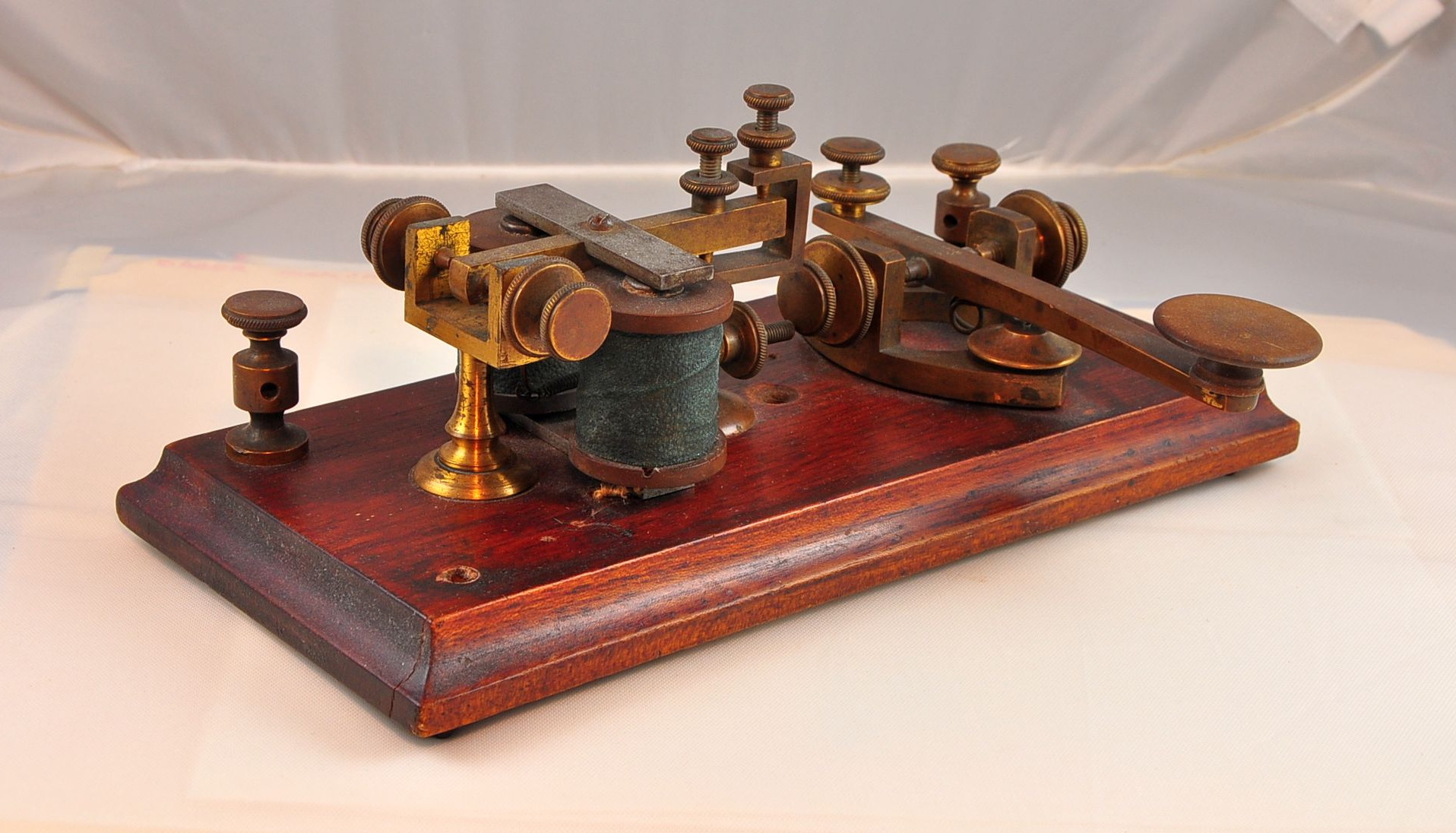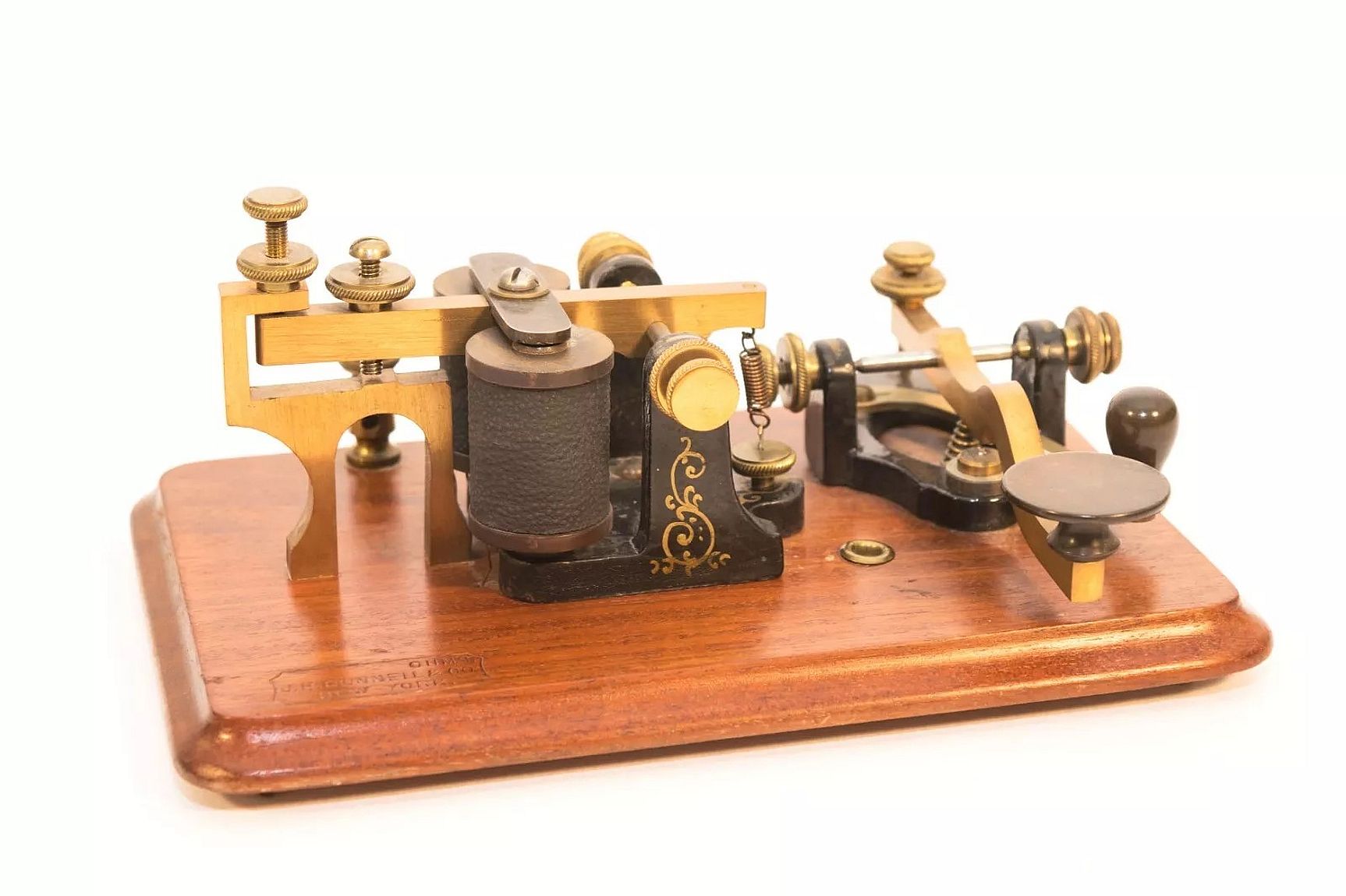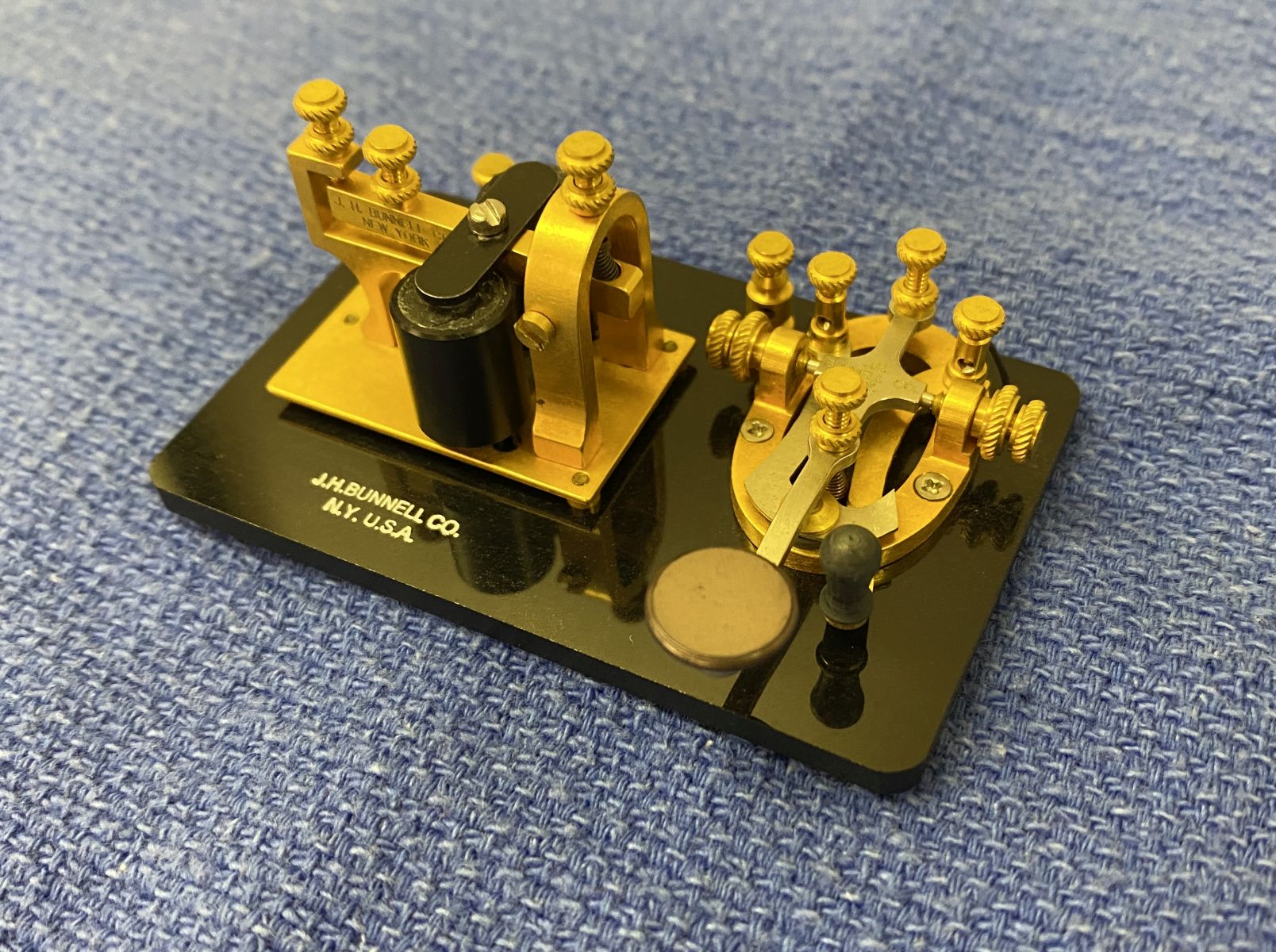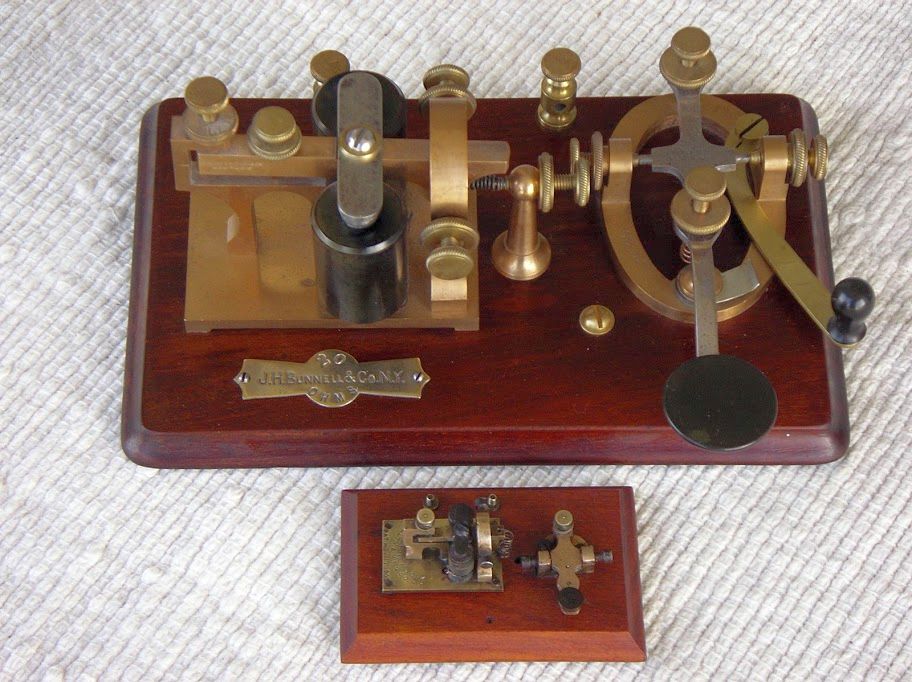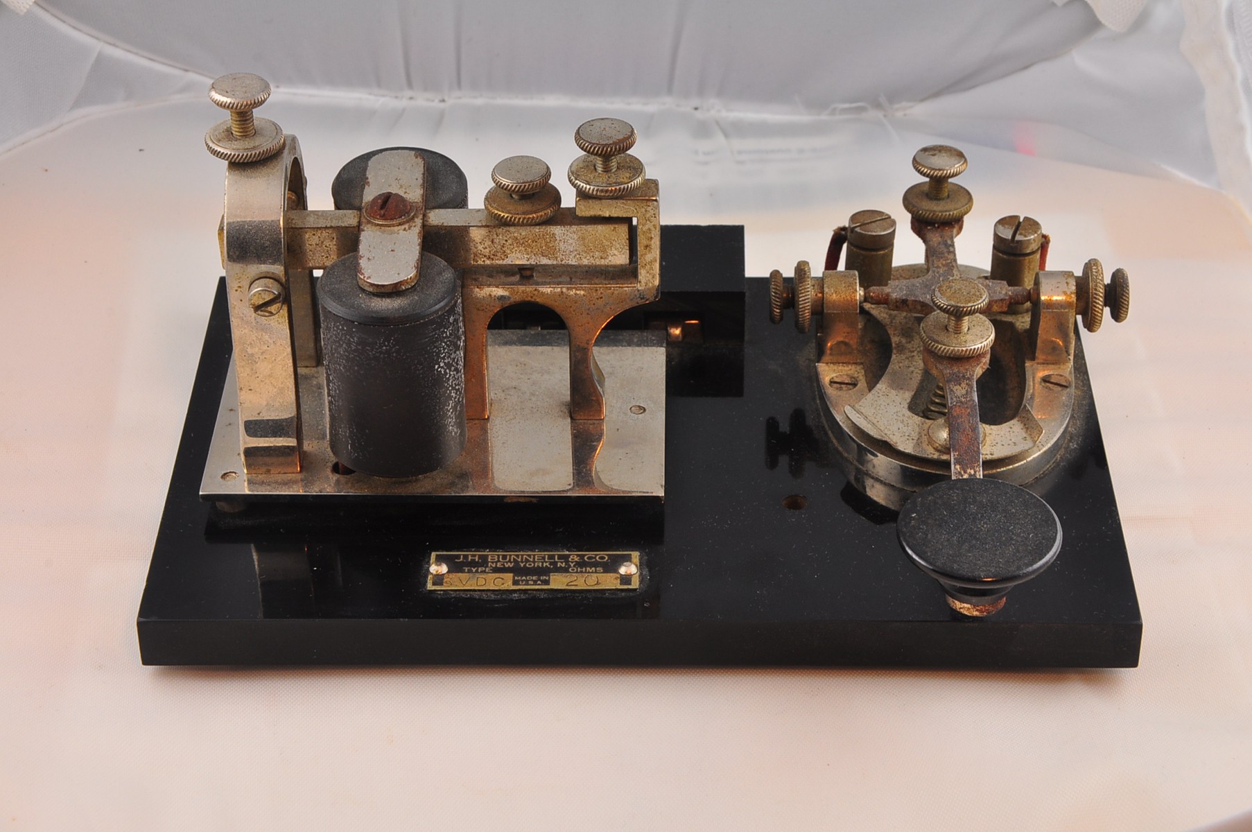 | Small Bunnell Practice Set. Early 1900's | J.H. Bunnell KOB with Pennsylvania Railroad Keystone Tag, NY. Ca. Early 1900's | Nickel Plated Bunnell KOB, NY. Ca. Early 1900's | Bunnell Navy KOB, NY. Ca. Early 1900's |