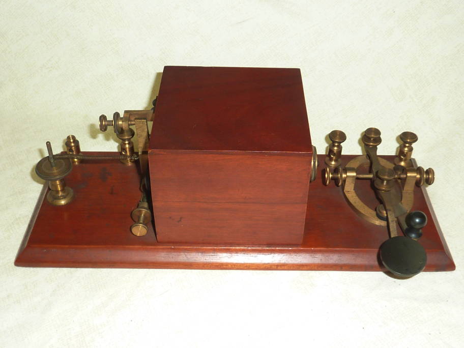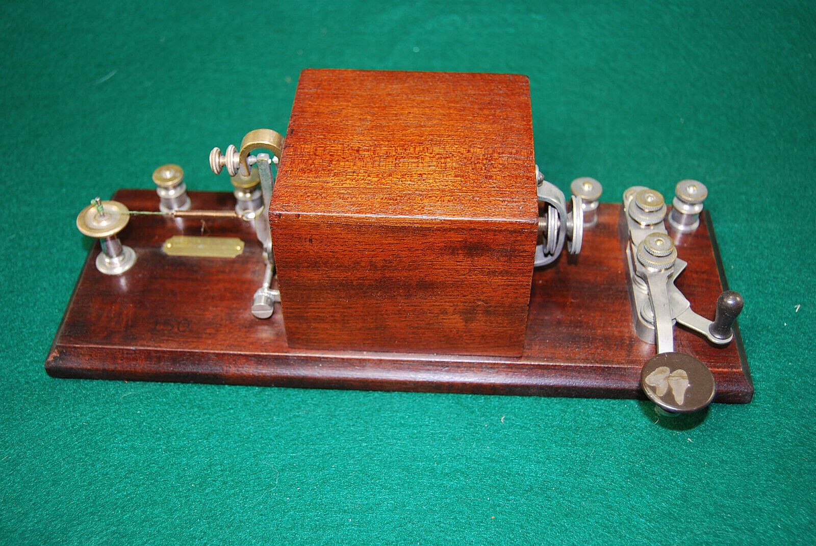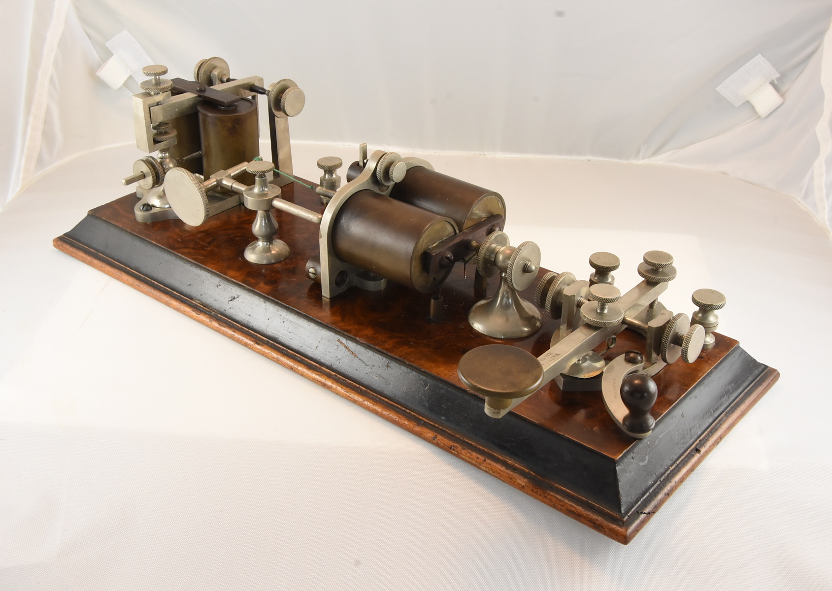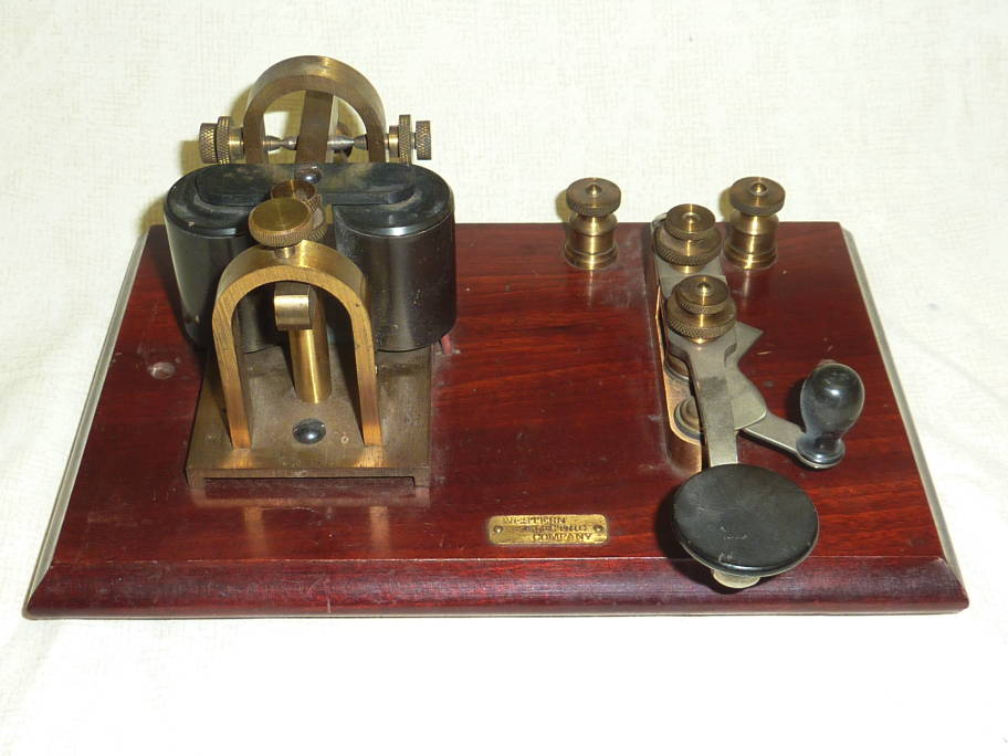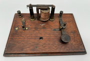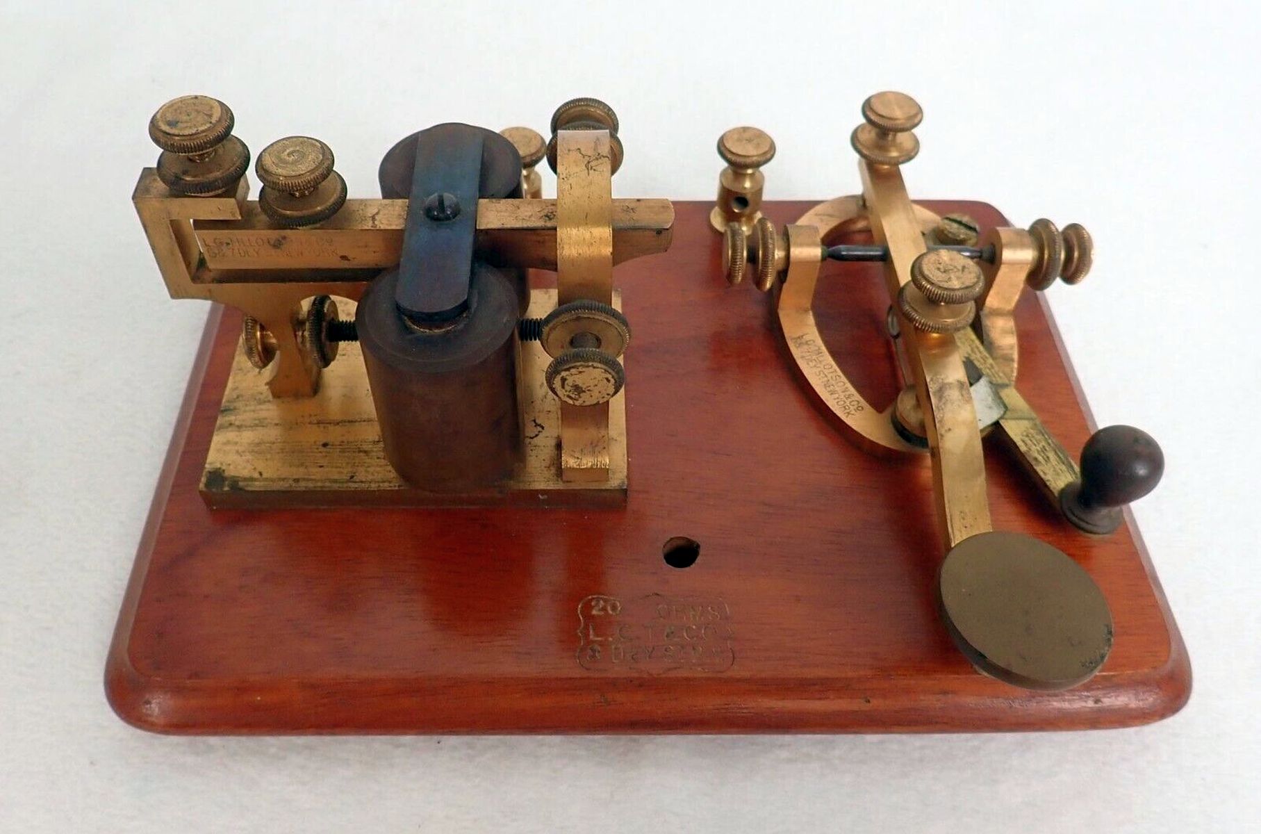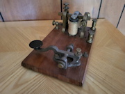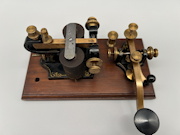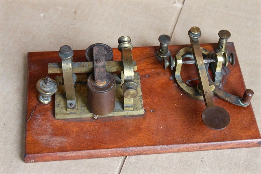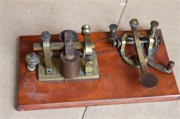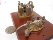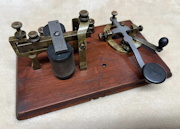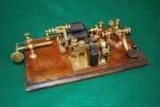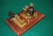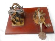 | Western Electric Combo Set, Chicago. Ca. 1890's | Knapp Electrical Works, Chicago. Ca. 1890's | German Key & Relay Set. Ca. Late 1800's | British GPO Key, Sounder & Galvanometer. Ca. Late 1890's |