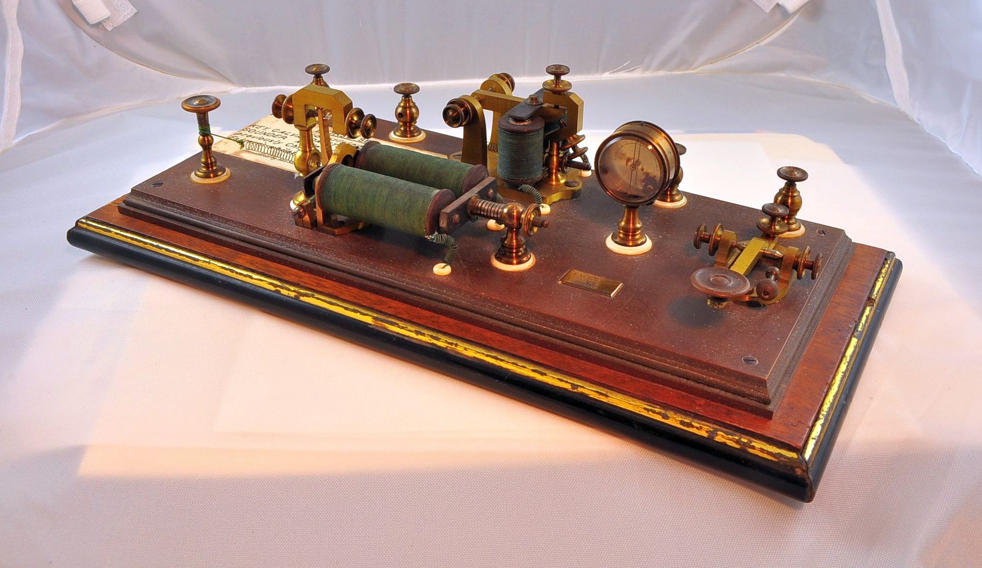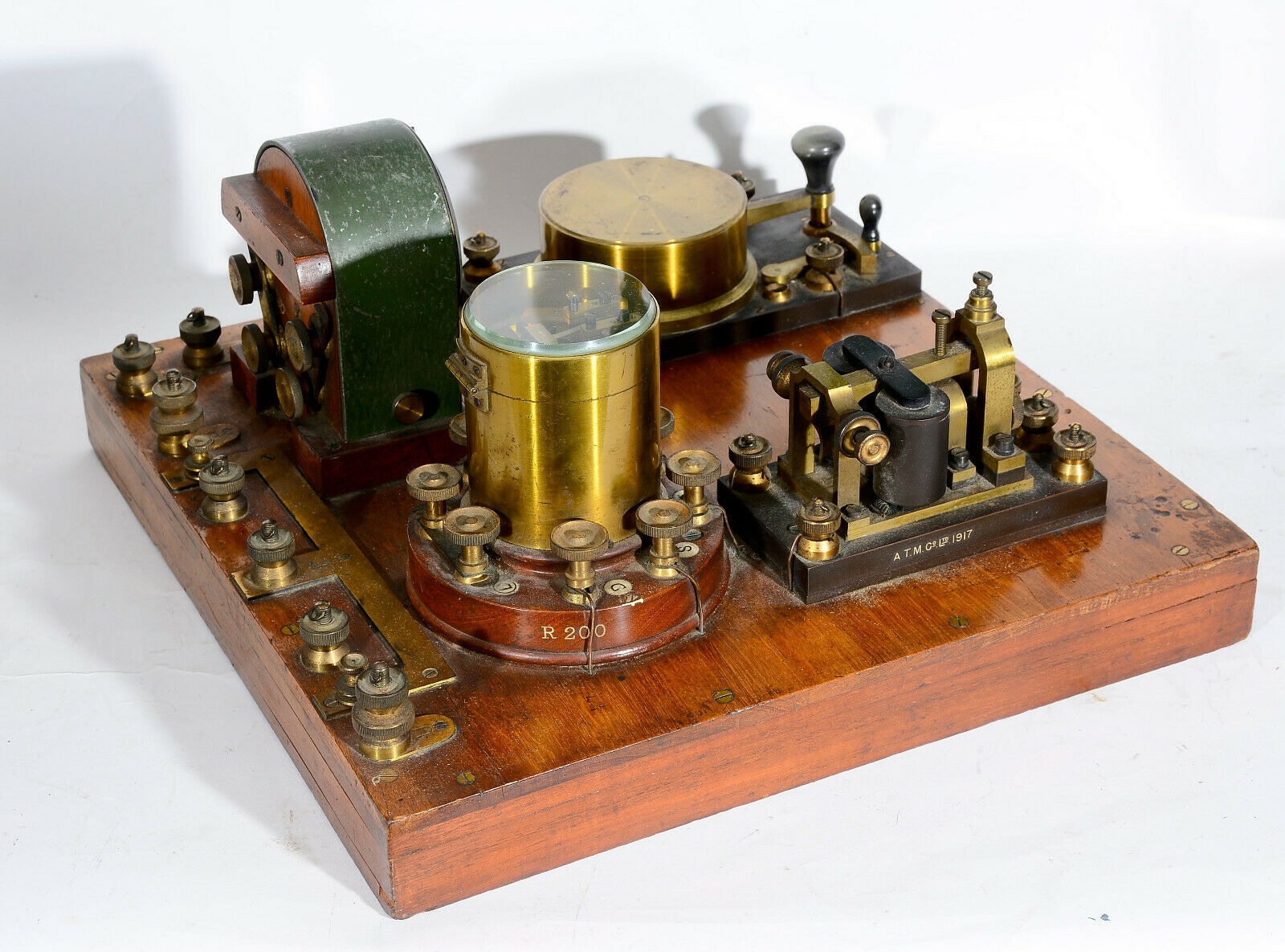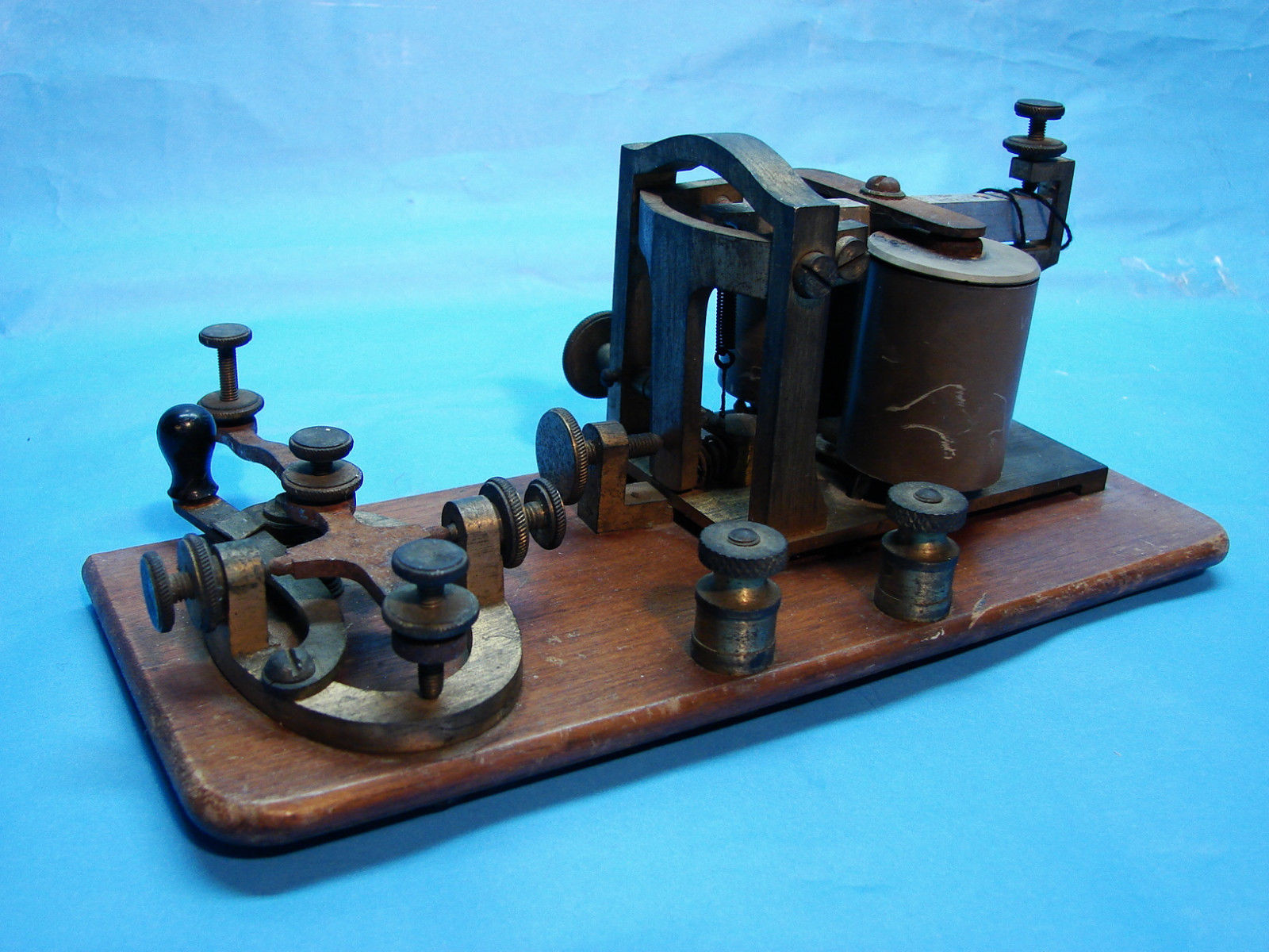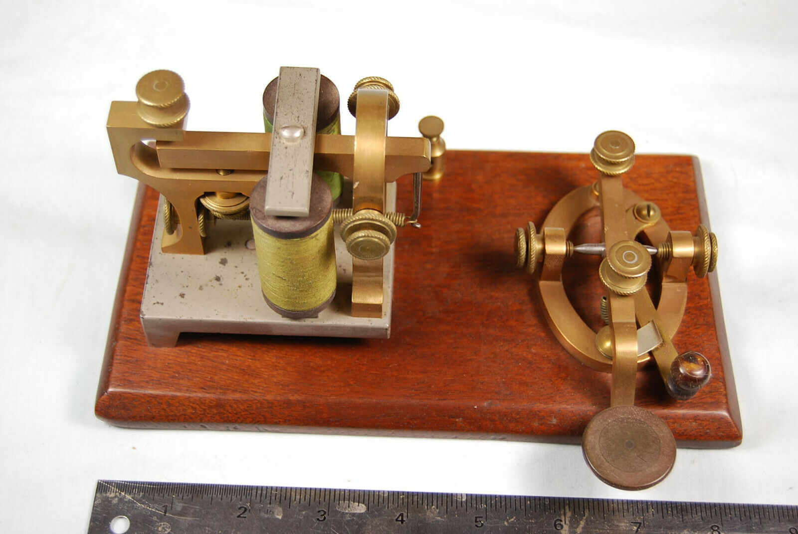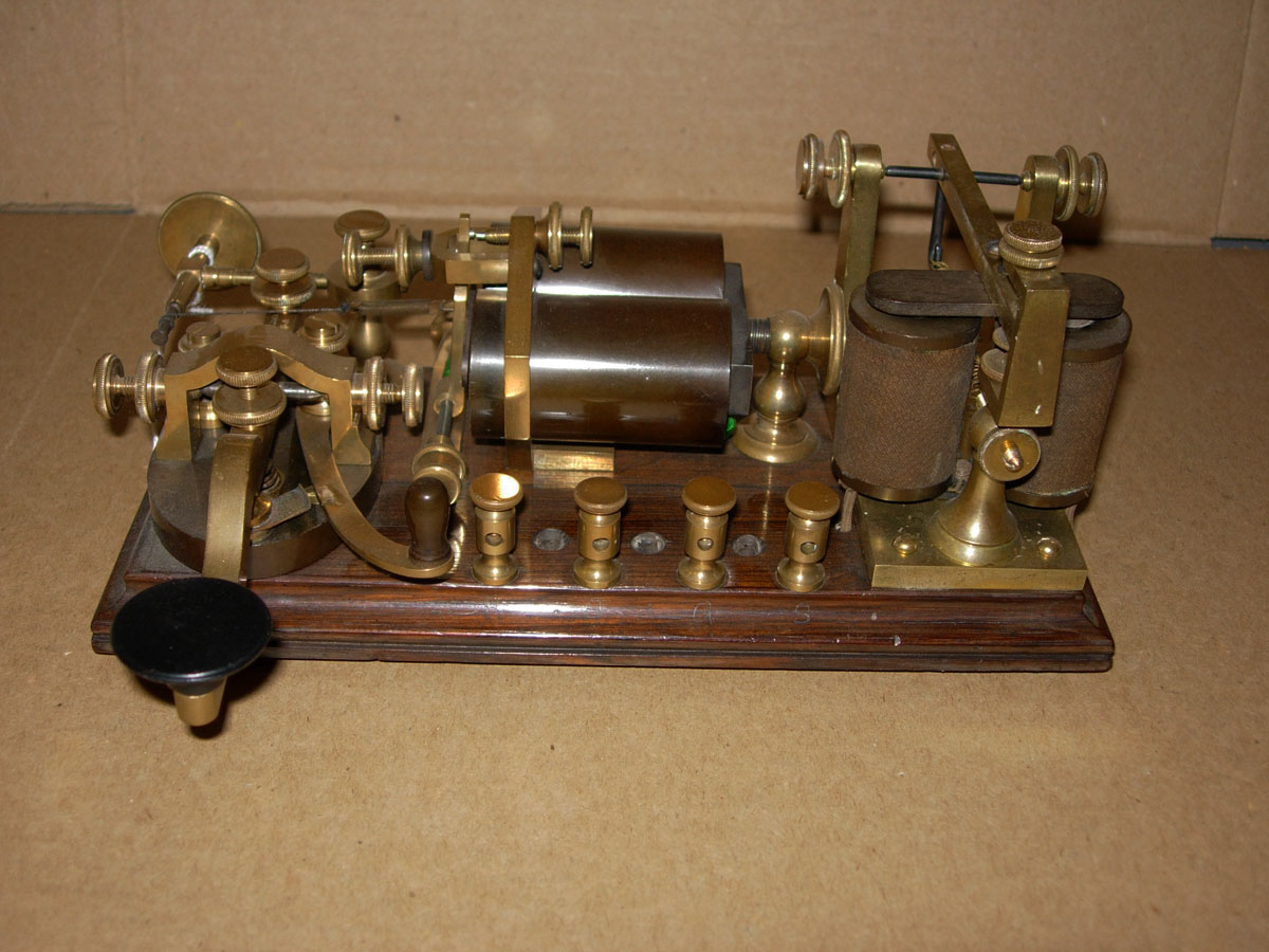 | Western Electric Combo Set, Chicago. Ca. 1890's | Knapp Electrical Works, Chicago. Ca. 1890's | German Key & Relay Set. Ca. Late 1800's | British GPO Key, Sounder & Galvanometer. Ca. Late 1890's |