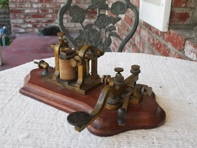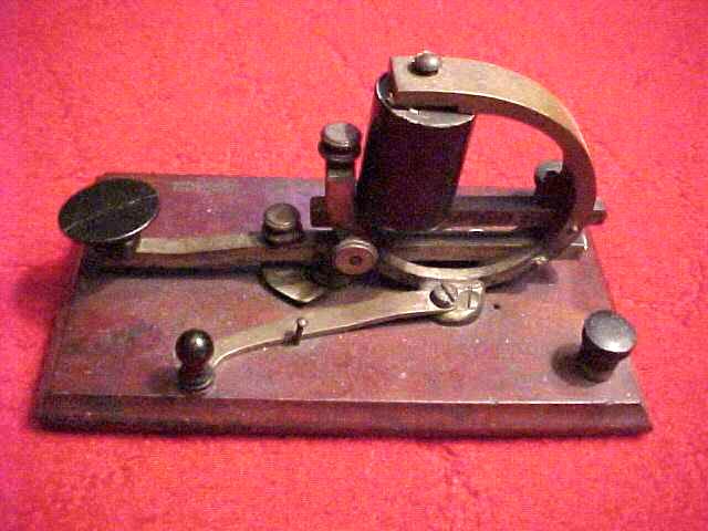 | American Electrical Works, Cleveland. Ca. 1890 | I Jokingly Refer to the Sounder on the American Electrical Works KOB as the "Death's Head Sounder" Because the Base of the Sounder Resembles a Human Skull ! | A Small KOB by National Electric Co. New York. Ca. 1890 | Small KOB With a Paper Label Under the Base Saying "Connecticut Telegraph Co." Probably Made by National Electric Co. Ca. 1890 |