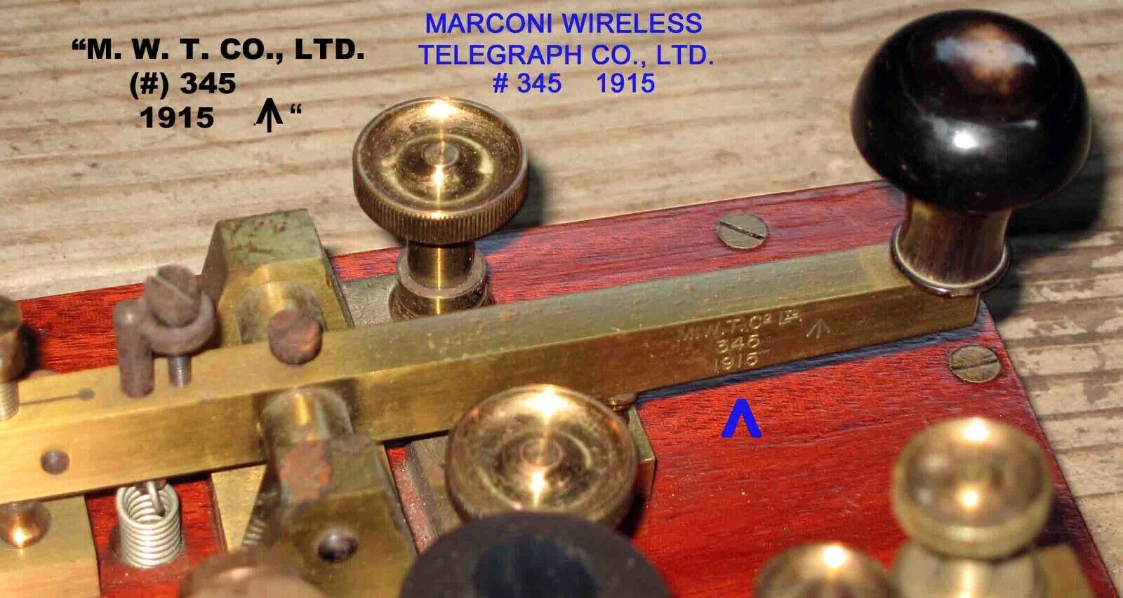 | Marconi-Wireless Markings on the Edison-Swan Set | L.M. Ericsson Swedish KOB. Ca. 1919 | Bunnell Beeko Practice Set. Ca. 1919 | Side View of the Beeko Set |