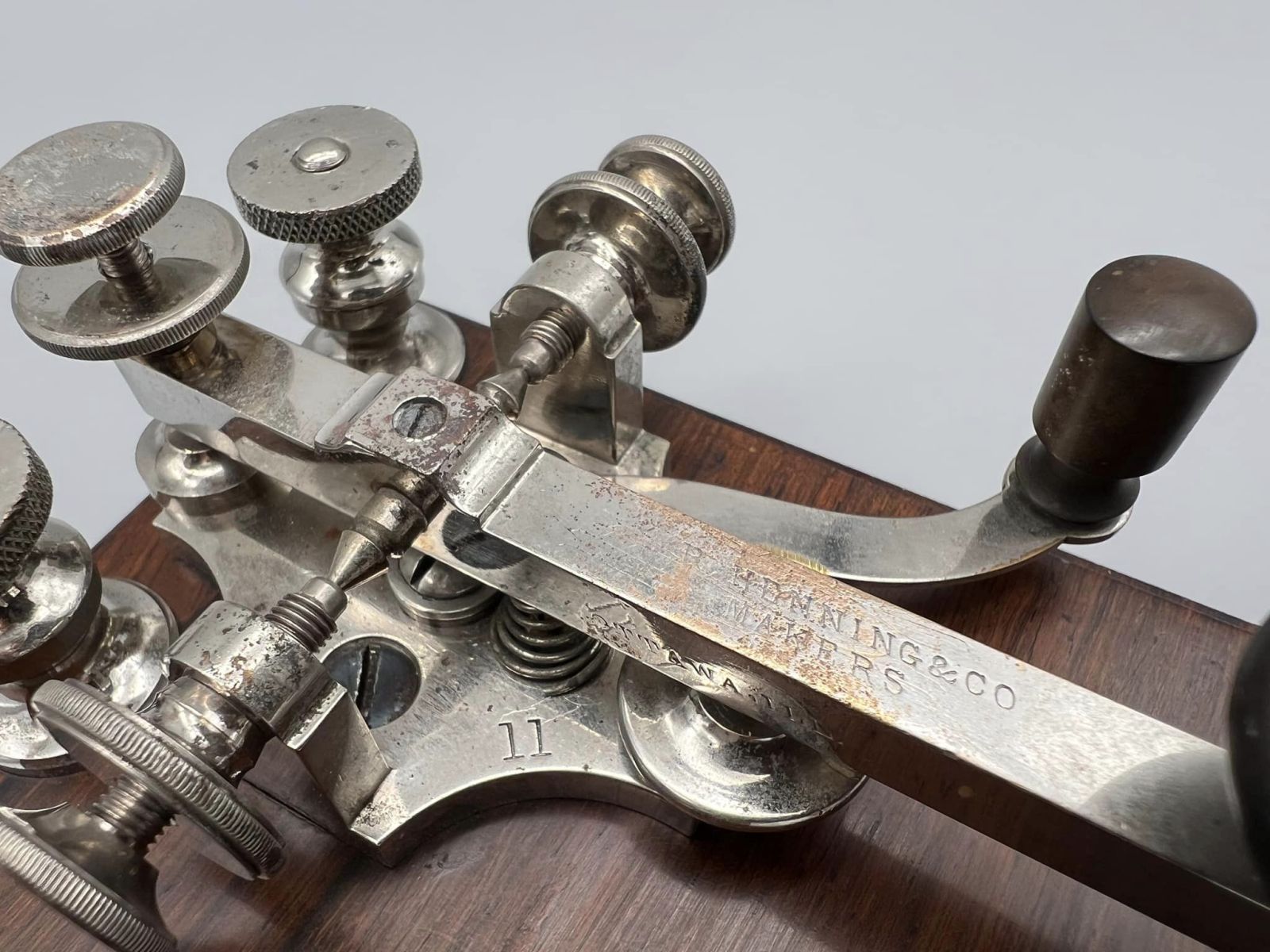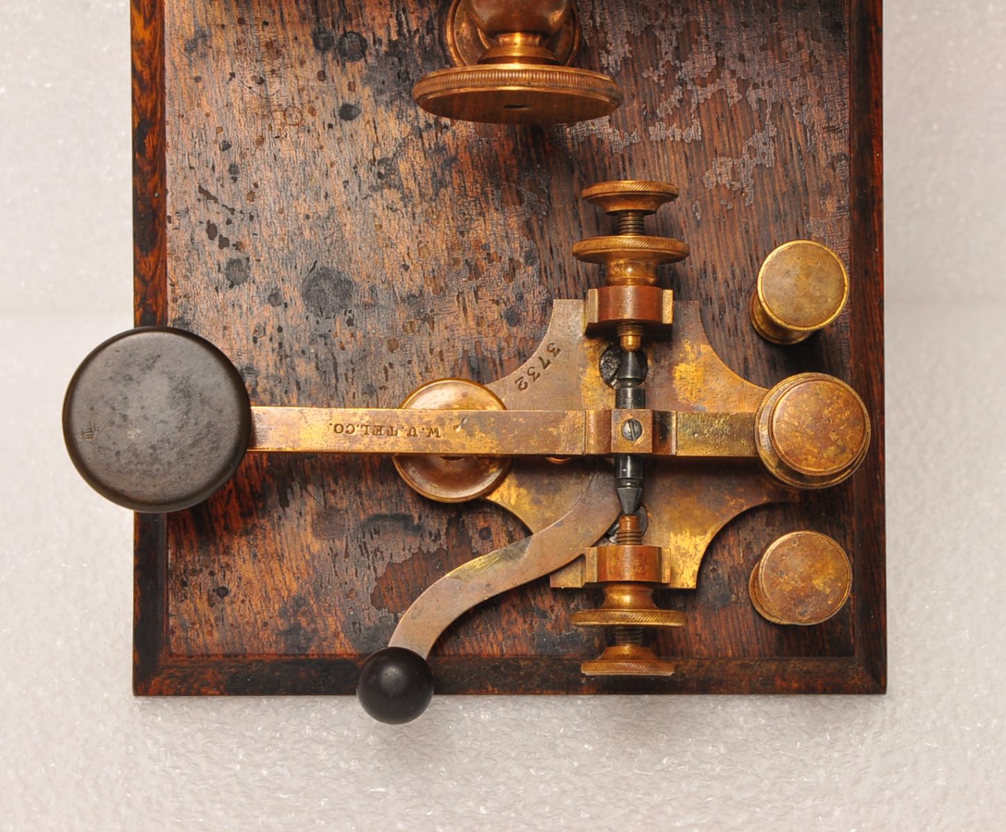 | J.H. Bunnell Practice Set, NY. Ca. Late 1880's | Fire Alarm KOB by Conrad-Young, Baltimore Md. Ca. 1880s | KOB by Rogers Electrical Works, New York. Ca. Late 1880's | A Close-Up of the Rogers KOB Showing the Unusual Lever Pivot |