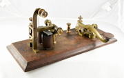 | Utica Fire Alarm Co. Ca. 1880's | Unmarked KOB With Camelback Key | Close-Up of the Camelback Key | J.H. Bunnell Box Relay, NY. Ca. 1880's |