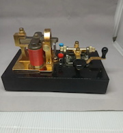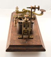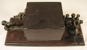 | Another View of the Small Barclay Box Relay. Note the Key is the Same as on the Bunnell Military KOB | Gem Practice Set, Horace Martin, NY. Ca. 1906 | A Practice Set by Adams-Morgan Co (AMCO). Very similar to the Gem Practice Set by Horace Martin | Close-Up of the Sounder on the AMCO Practice Set |
