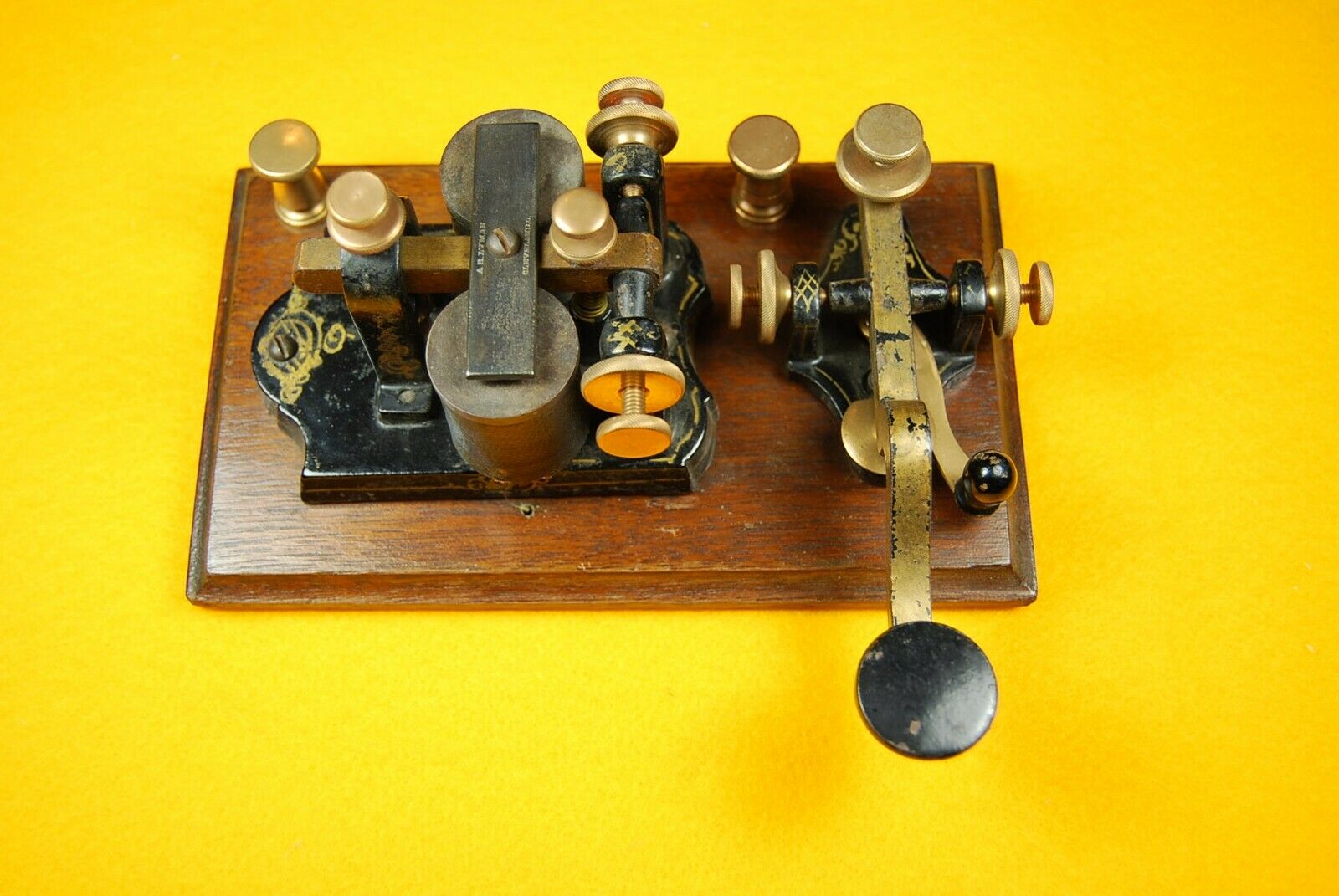 | German Key & Sounder Set. Ca. Early 1900's | Postal Telegraph Skirrow Patent KOB, NY. Ca. 1904 | Ohio Transmitter Co. Practice Set. Ca. Early 1900's | J.H. Bunnell Ghegan Patent KOB, NY. Ca. 1905 |