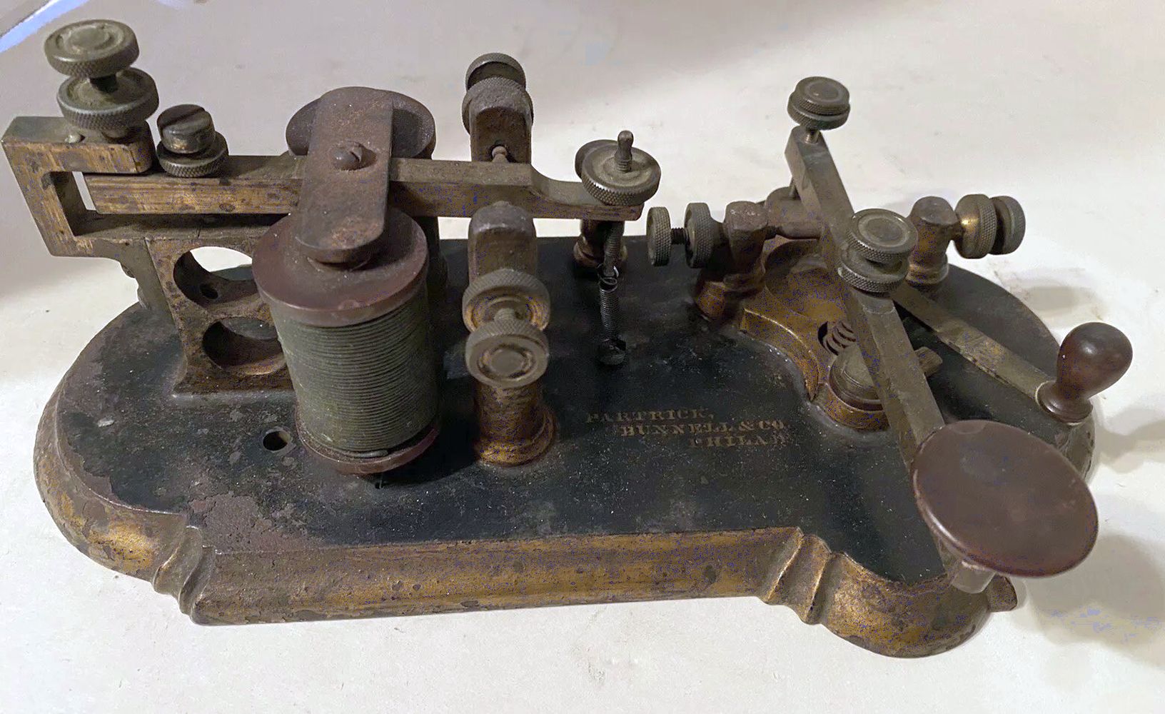 | Another View of the Partrick & Carter Box Relay Showing the Camelback Key | Partrick & Carter, Philadelphia. Ca. 1880. Key Has a Steel Lever Which Pre-Dates the Bunnell 1881 Patent | A Combo Set by Partrick & Carter, Philadelphia. Ca. 1880. Also Has a Steel Lever Key | Another View of the Partrick & Carter Combo Set |