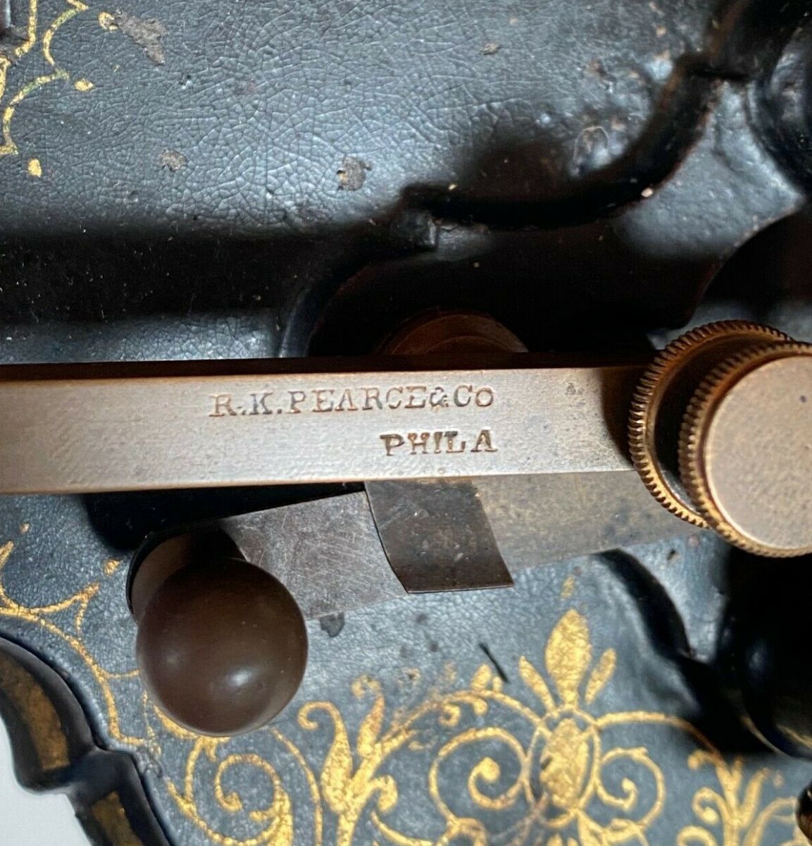 | Close-Up of the Buell Key | Private Line Set by RK Pearce, Philadelphia. Late 1870's | Close-Up of the Pearce Name on the Private Line Set | R.K. Pearce Combo Set, Ca. Late 1870's |