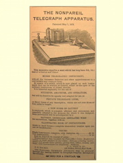 | An Advertisement for the Nonpareil Telegraph Apparatus | Watts Practice Set, Baltimore. Ca. 1870's | J.A. Lannert, Cleveland. Ca. 1870's | M.A. Buell, "Eureka" Practice Set, Cleveland. Ca. 1870's |