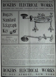 | An Advertisement for the Rogers Standard Telegraph Key | Altoona Railroad Shops KOB, Altoona Pennsylvania. Ca. 1890 | Altoona Shops KOB, Altoona Pennsylvania. Ca. 1890 | Novelty Electric Co, Philadelphia. Ca. 1890's |