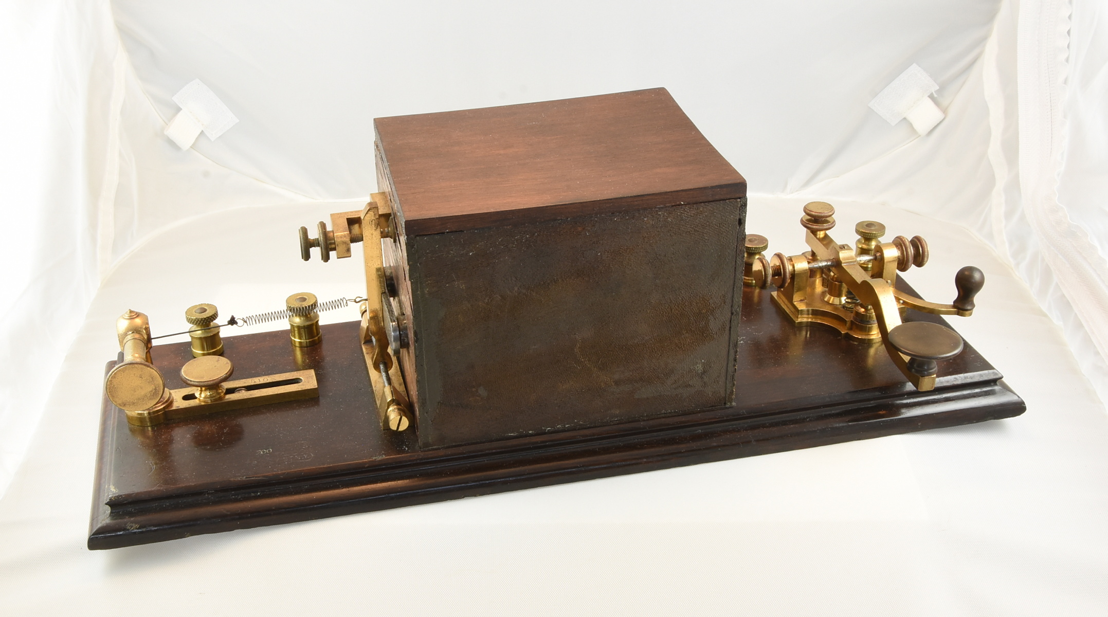 | L.G. Tillotson Box Relay, NY. Ca. 1870 | LG Tillotson Relay With Caton-Pattern Key. Similar to the Splitdorf Patent Box Relay but Minus the Resonating Box. Ca. 1870 | Close-Up of the Caton-Pattern Key on the Tillotson Relay | Tillotson Practice Set. Ca. Early 1870's |