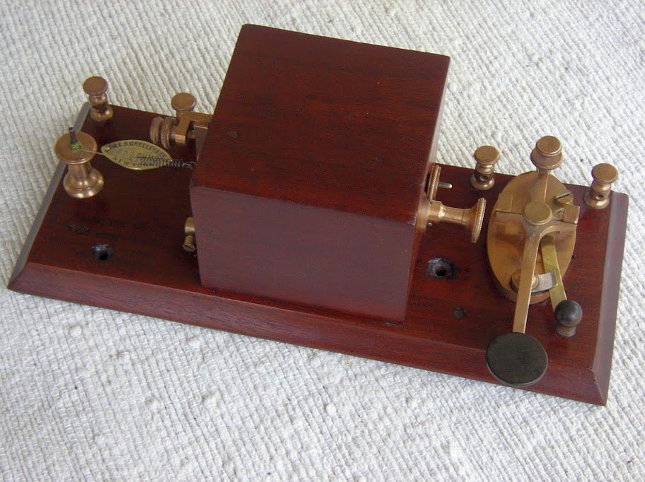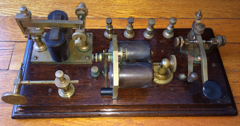 | L.G. Tillotson Splitdorf Patent Box Relay, NY. Ca. 1870 | Lake Shore & Michigan Southern Railway Box Relay. Ca. 1870 | W.H. Johnson Combo Set. Louisville, Ca. 1870 | Charles Williams "Cheapo" Practice Set, Boston. Ca. 1870 |
