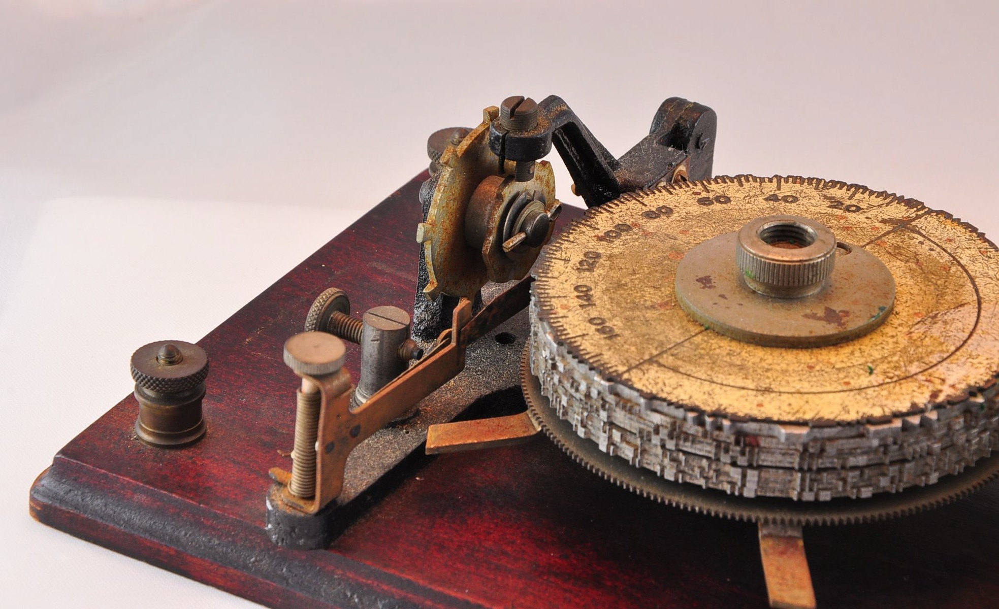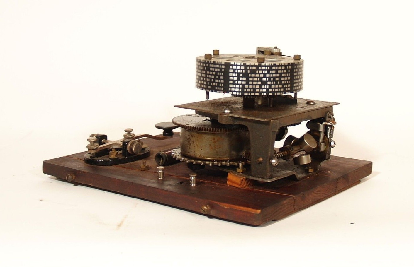 The Omnigraph #2 had not one, but a stack of 15 notched code wheels which could be changed out with other discs. Both American and International Morse discs were available.