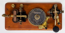 A big part of the Omnigraph Company's business was selling instruments to various telegraph training schools around the country. This led to the introduction of customized models, some of which included a built-in telegraph key or the addition of a buzzer to hear the code so that a separate sounder was not required.