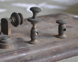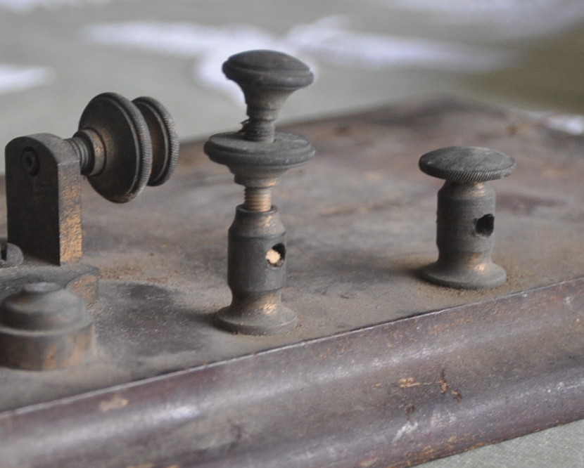 Many times you will find a telegraph instrument that has been dropped in the past, the result of which is often that one of the knurled thumbscrews gets bent. Repairing these is easy, but the procedure to be used depends on how badly the screw head is bent.