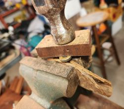 2. If the screw shaft itself is fairly straight but the head of the screw is bent, we will use a procedure similar to 1. but instead of hitting sideways on the screw head, we will hit straight down on the screw head: