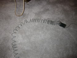 Of course, Murphy's Law dictates that the broken wire end will be far up inside the hole so you can't see it. So now your only option is to remove the coil cover and completely unwind the coil. I like to do this in an area like the living room where you can spread things out. If you have a dining room table with a table cloth, you can wind the wire around the edge of the table as you unwrap it. The reason for spreading it out is to avoid kinking the wire which can cause it to break.